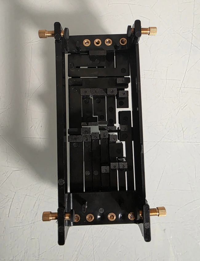 The Guitar Chord Presser provides targeted aid for helping to quickly master chords and strumming patterns. In good condition with original box.