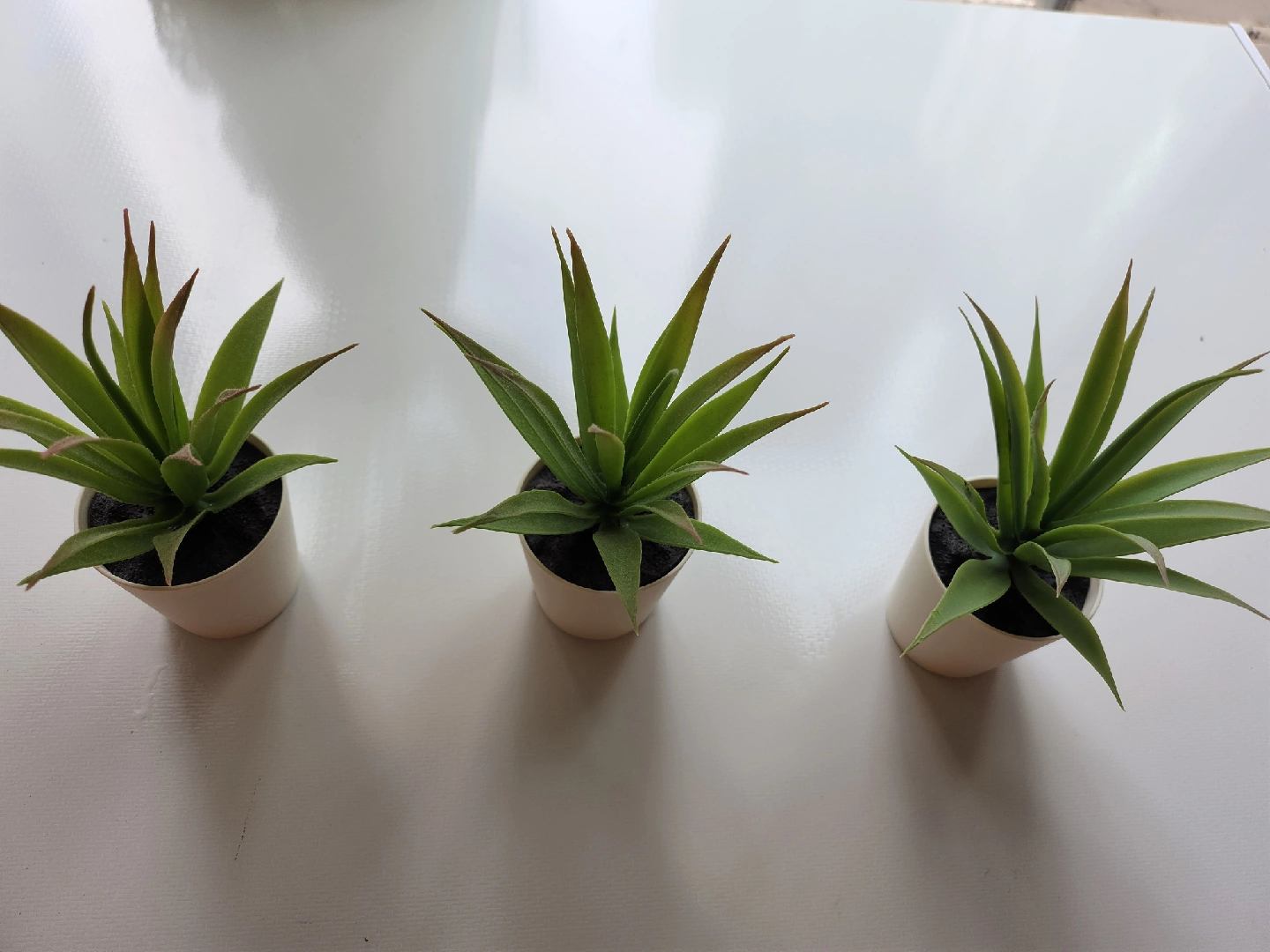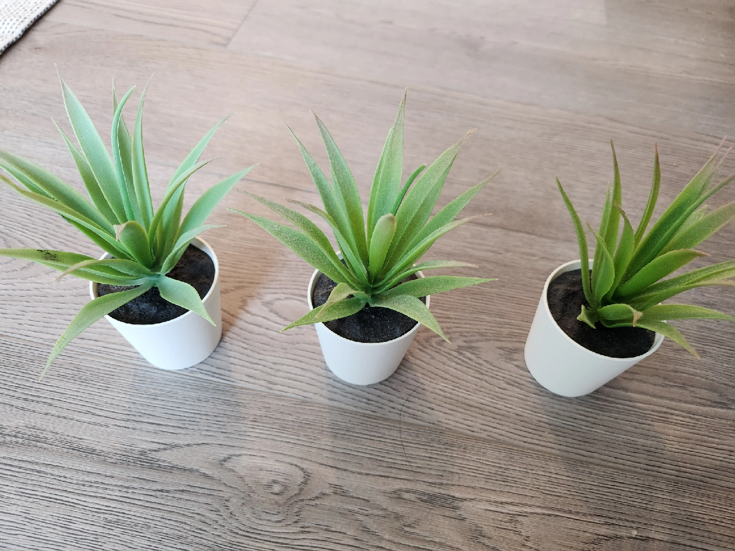 Selling a set of 3 artificial plants. They're in great condition and would look lovely on a shelf or desk! They come in white pots and are perfect for adding a touch of greenery to your space without any maintenance