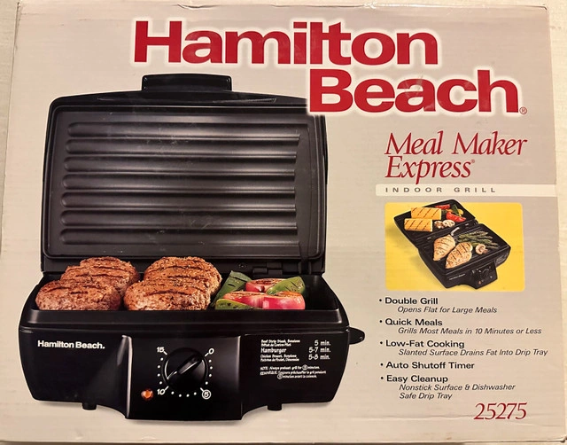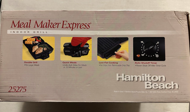 Hamilton Beach Meal Maker Express Indoor Grill. New in box. Evening and weekend pickup only. Closest major intersection is Hurontario Street and Central Parkway in Mississauga. For Sale By: Owner