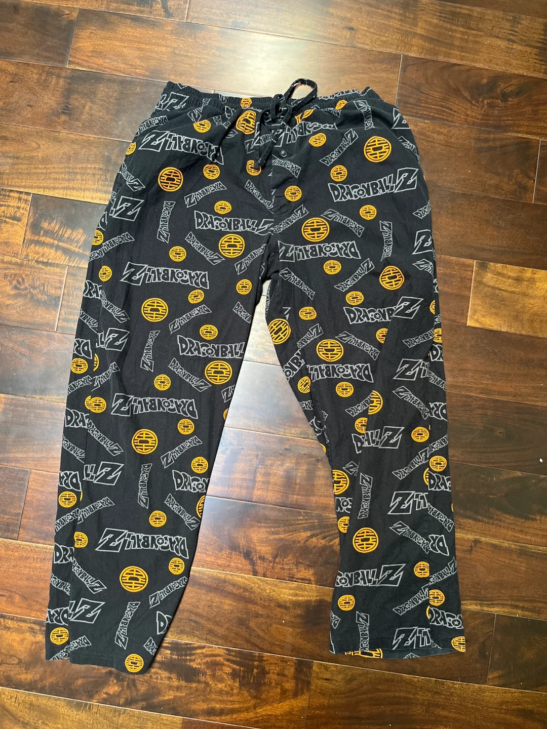 Cozy Dragon Ball Z pajama pants! These are perfect for lounging around the house or binge-watching your favourite anime. The pants feature the Dragon Ball Z logo and iconic symbols. They're in great condition and ready for a new home!