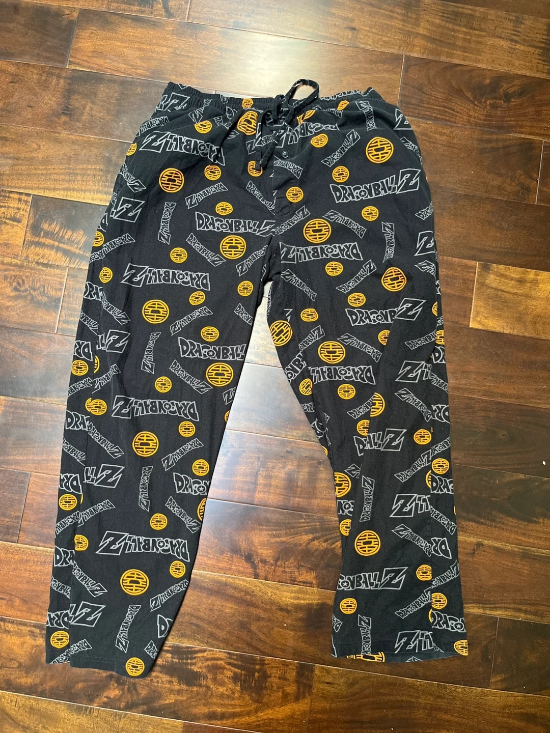 Cozy Dragon Ball Z pajama pants! These are perfect for lounging around the house or binge-watching your favourite anime. The pants feature the Dragon Ball Z logo and iconic symbols. They're in great condition and ready for a new home!