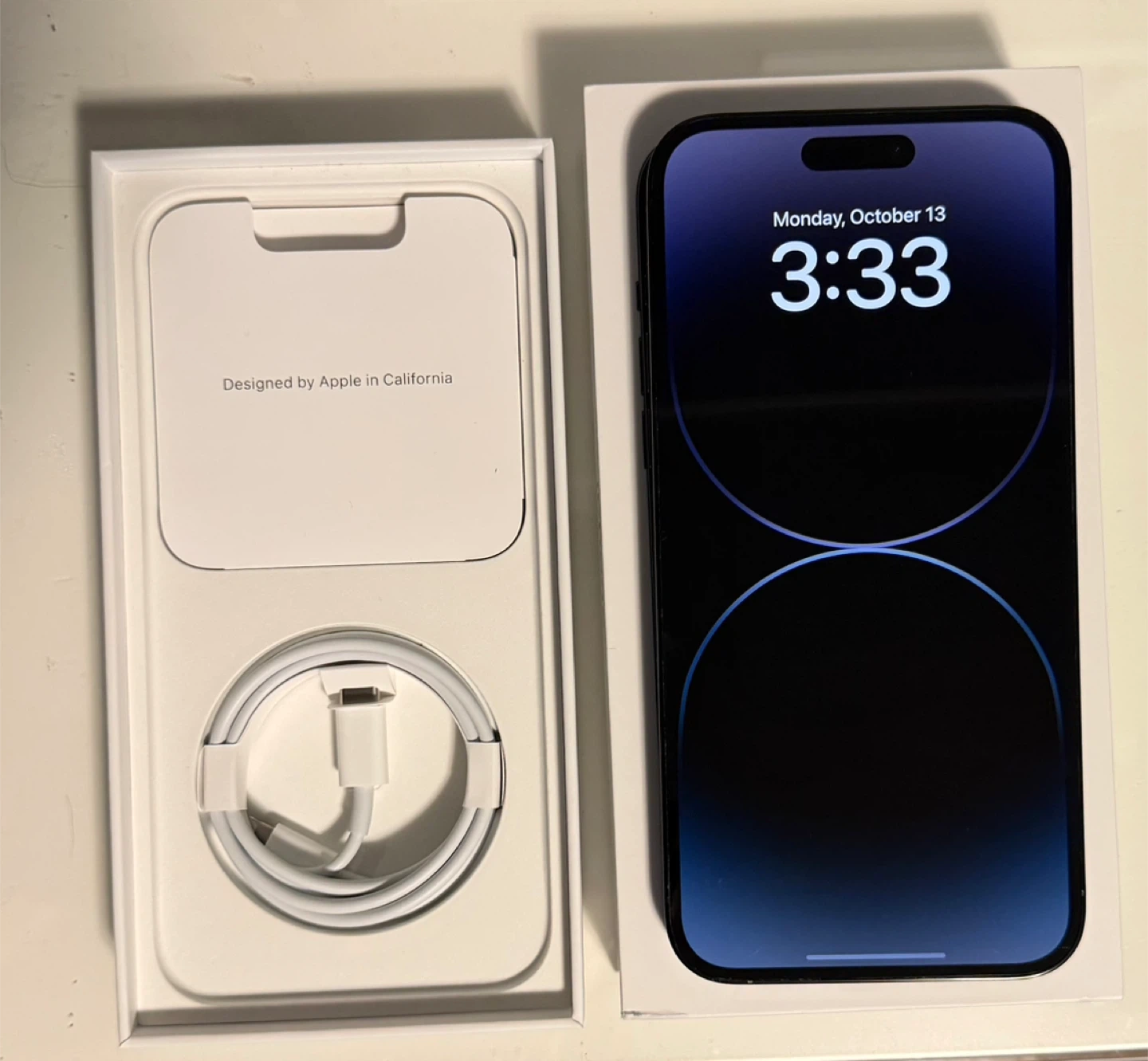 Selling an iPhone 14 Pro Max 256gb space black. It comes with the original box and charging cable. This phone is in great condition.