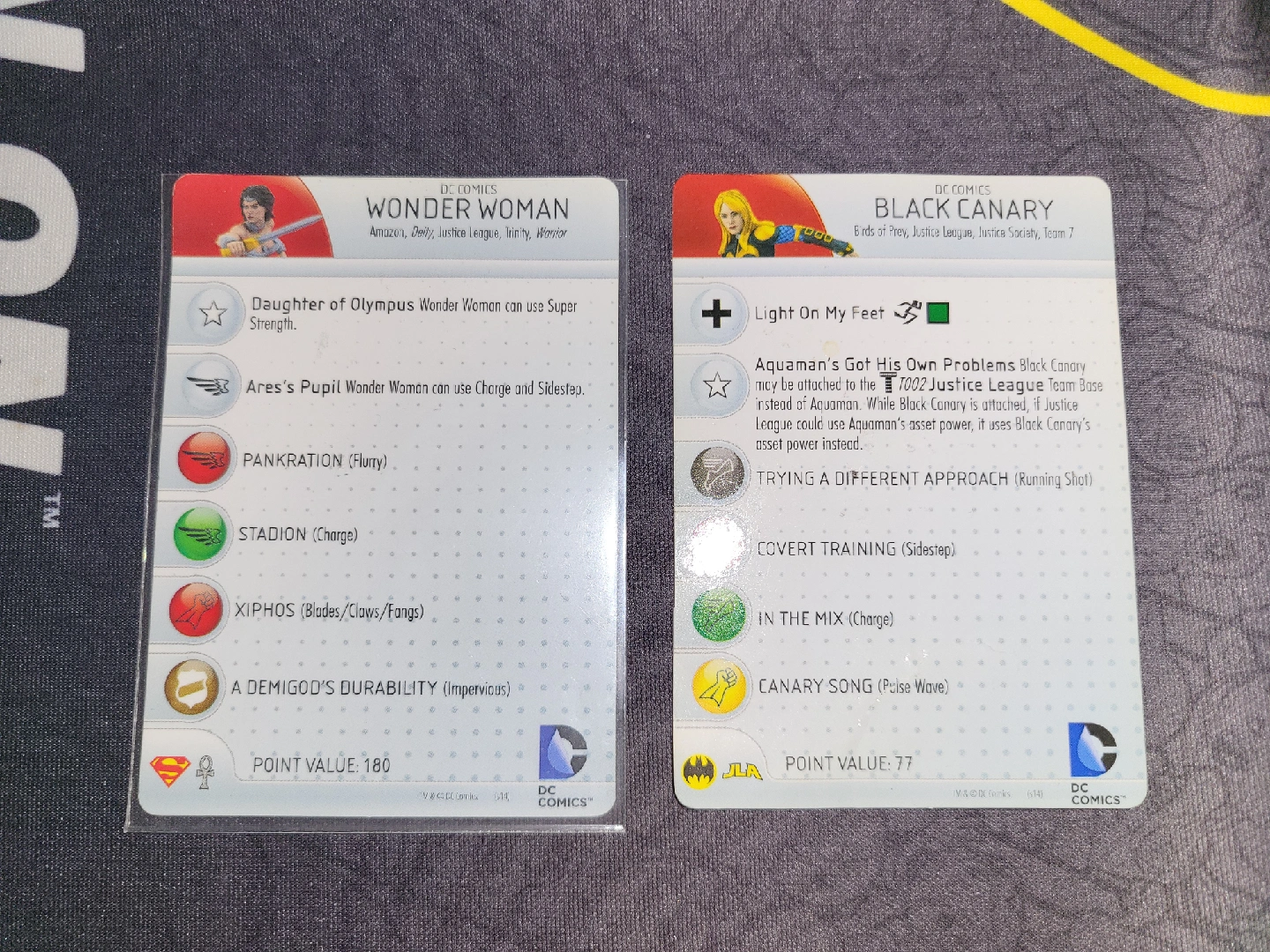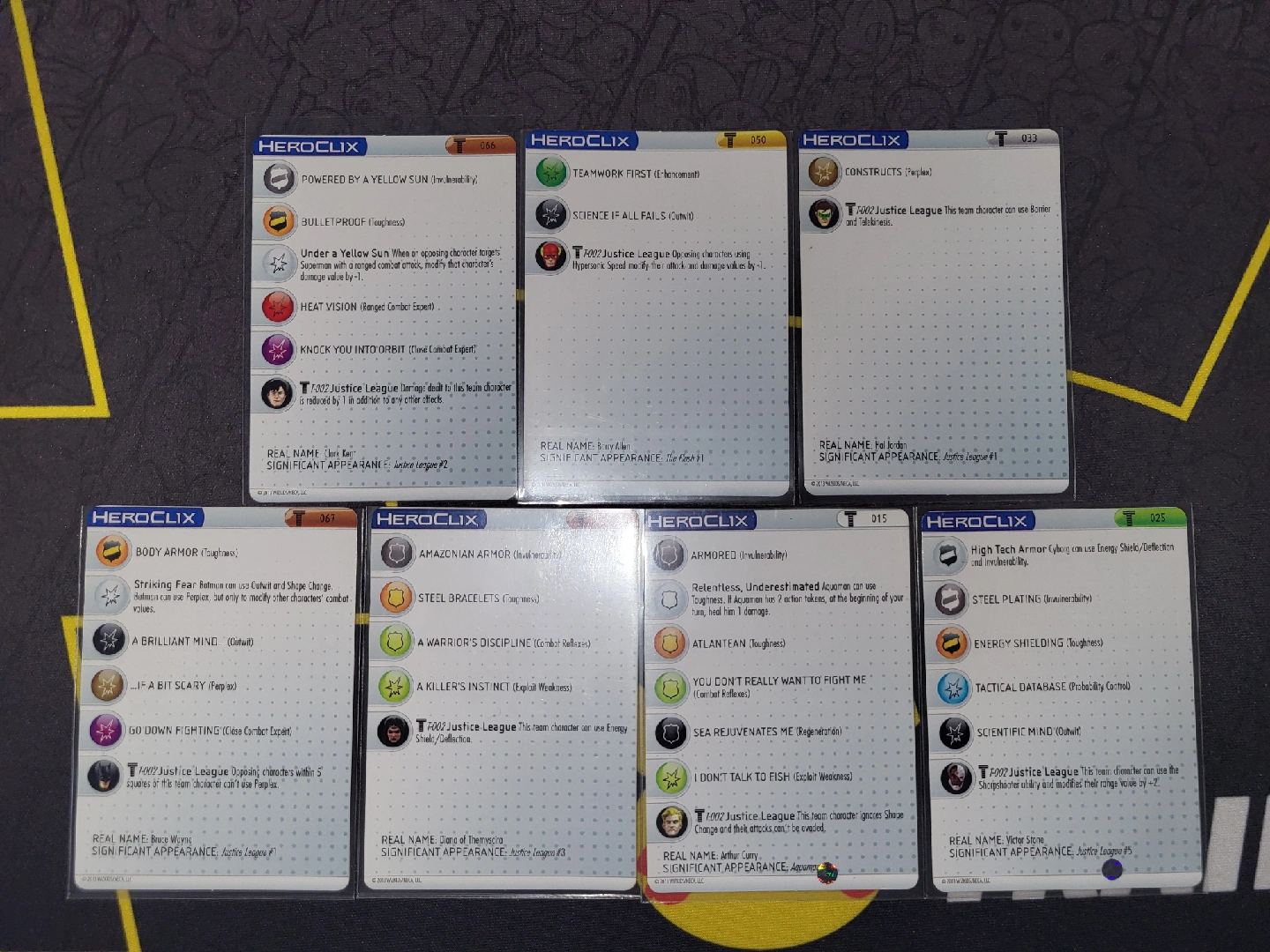 Complete Teen Titans Justice League Team Base Justice League Team Base #T002 Superman 066 Batman 067 Wonder Woman 068 Flash 050 Green Lantern 033 Cyborg 025 Aquaman 015 Alternative Swaps: Black Canary D-021 Wonder Woman D-022 All cards are sleeved & clix bases included.