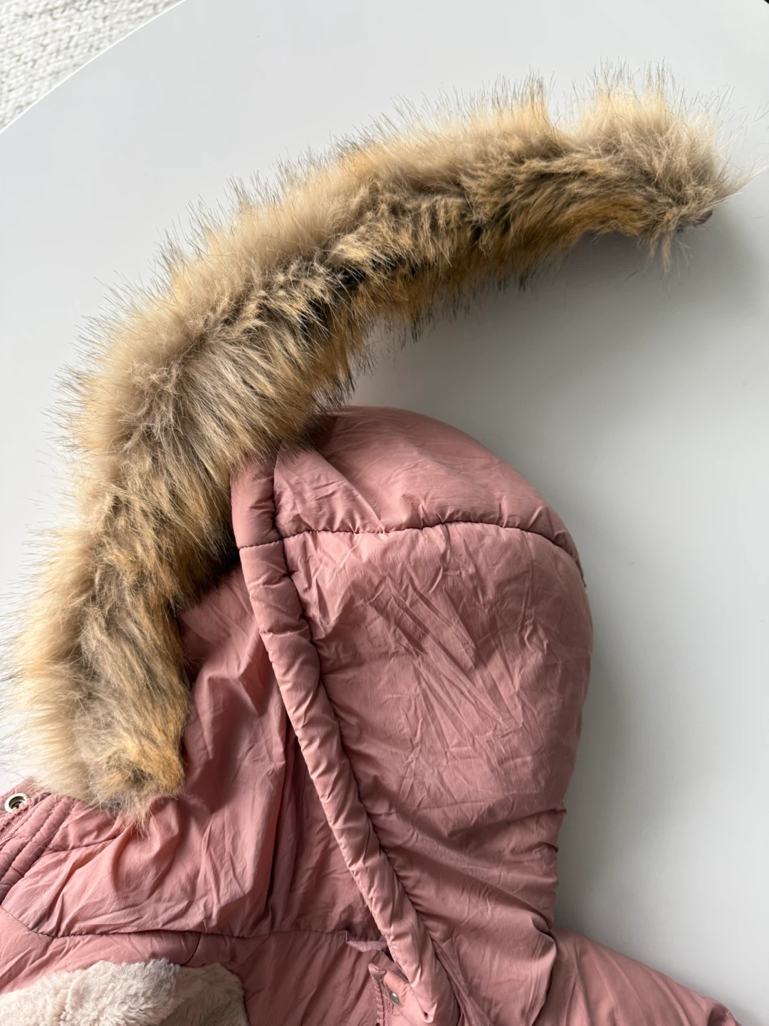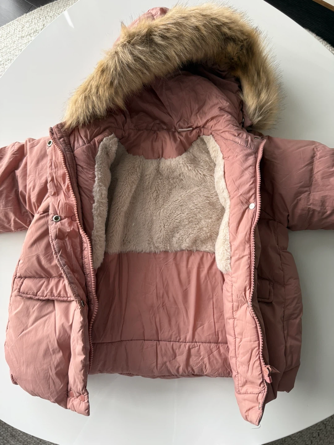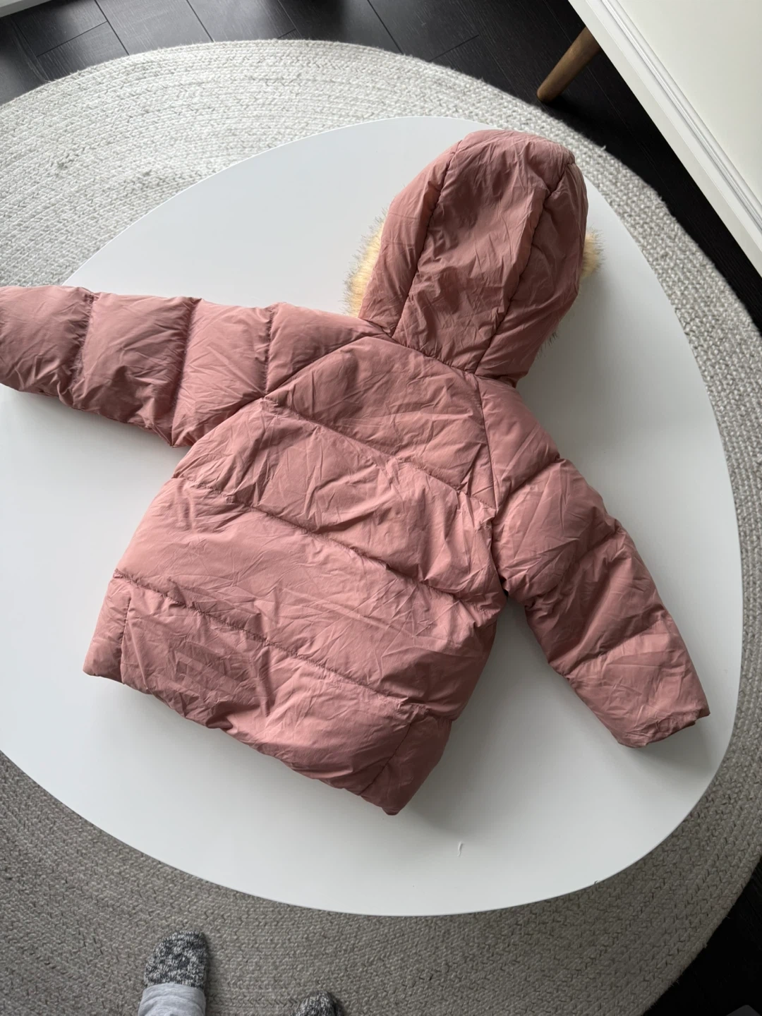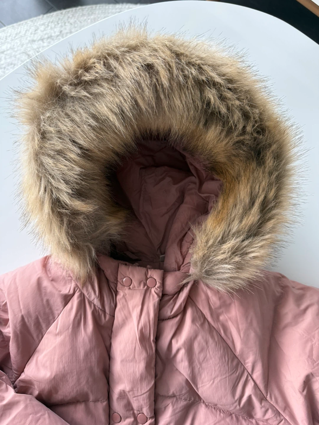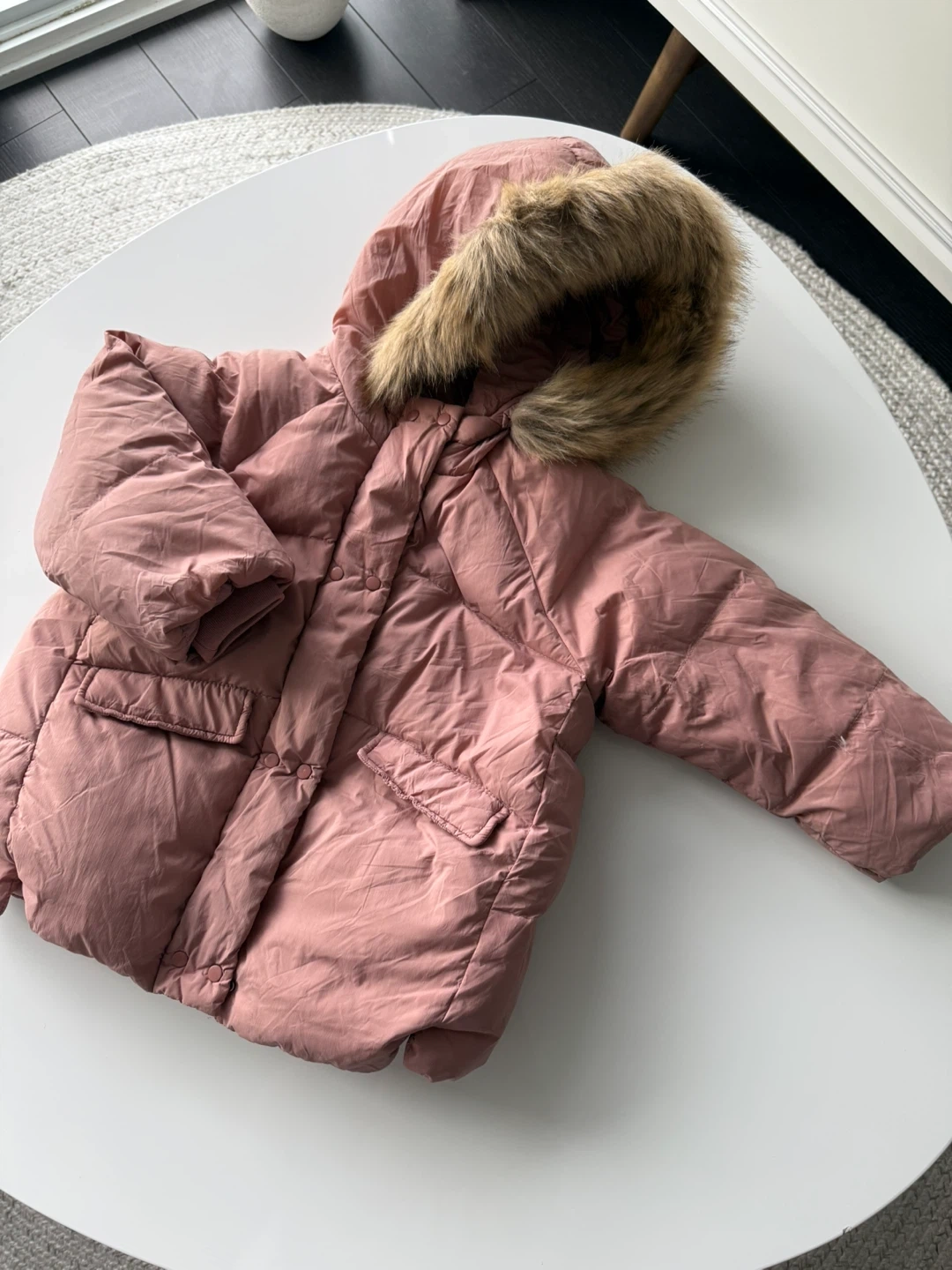 Selling a cute pink puffer jacket! It has a faux fur hood that's super soft and the fur trim is removable depending on your taste or mood. Perfect for keeping your little one warm and cozy during the colder months. Check out my other listings!