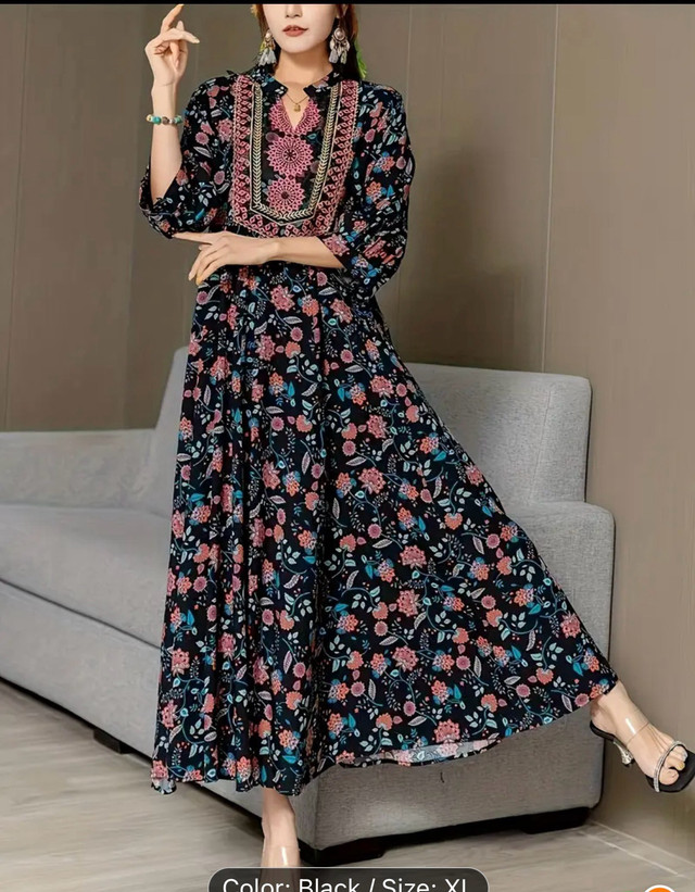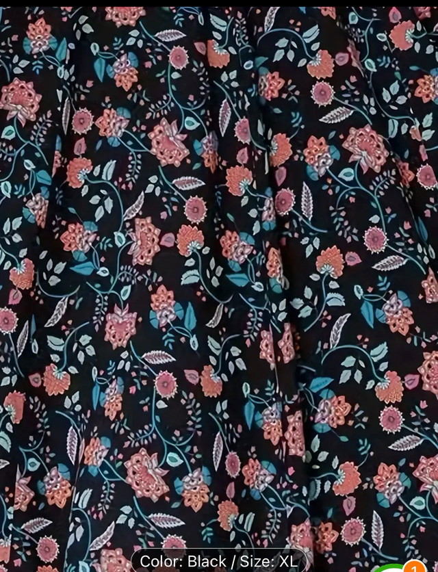 1 / 41 / 4Buy & SellWomen's XL Black Floral Maxi Dress 40 $Women's XL Black Floral Maxi Dress 40 $$30Beautiful black maxi dress. Features a floral print, three-quarter sleeves, and an embroidered neckline. A-line silhouette. Flowy and comfortable.WHERE TO MEETCheck LocationView MapSELLERverifiedAssiaScarborough Junction17112 reviews3 chats·2 favorites·120 viewsSEND CHAT TO SELLERHi Assia! I’m interested in your listing.Hi Assia! I’m interested in your listing.Get the Karrot app to chatSign In to chat