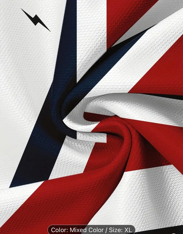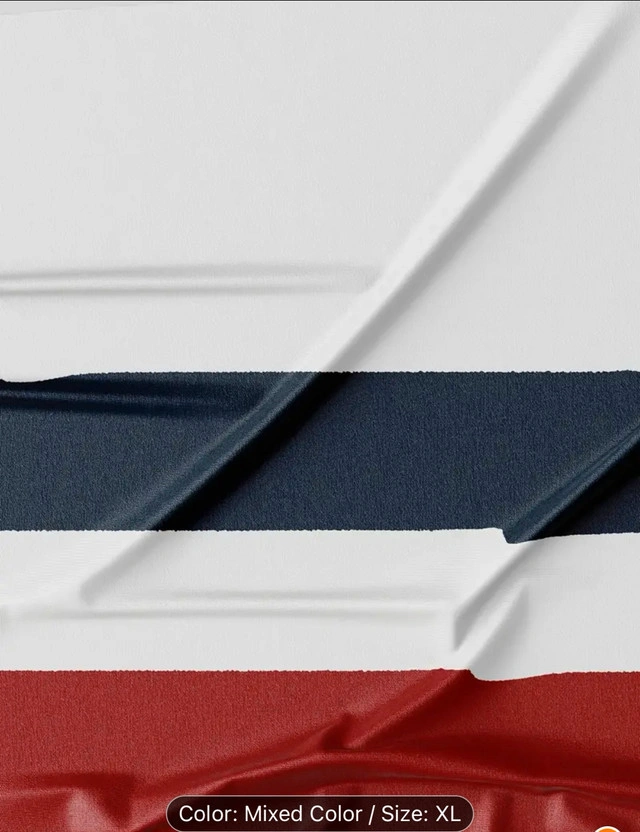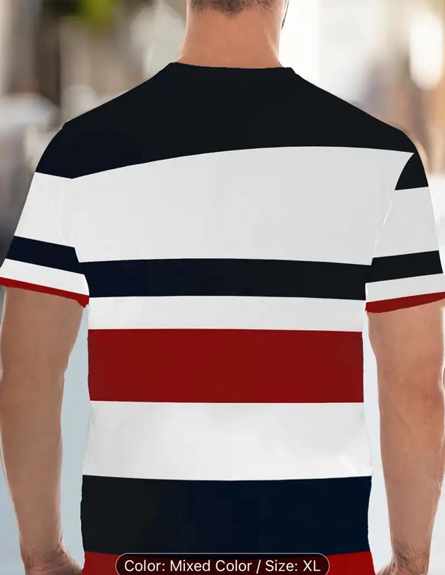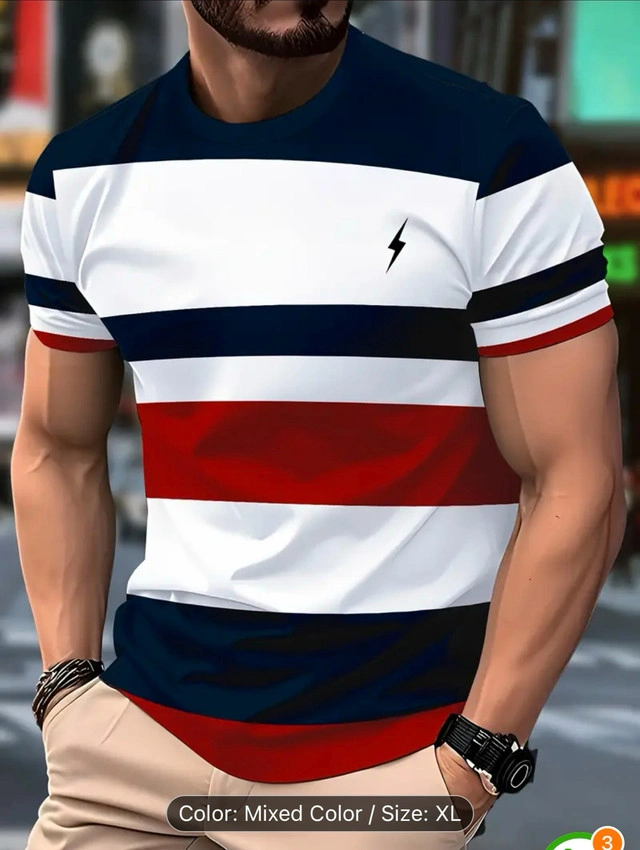 88Short sleeve crew neck t-shirt. Features horizontal stripes in navy, white, and red. Small lightning bolt graphic on the chest. Size extra-large.