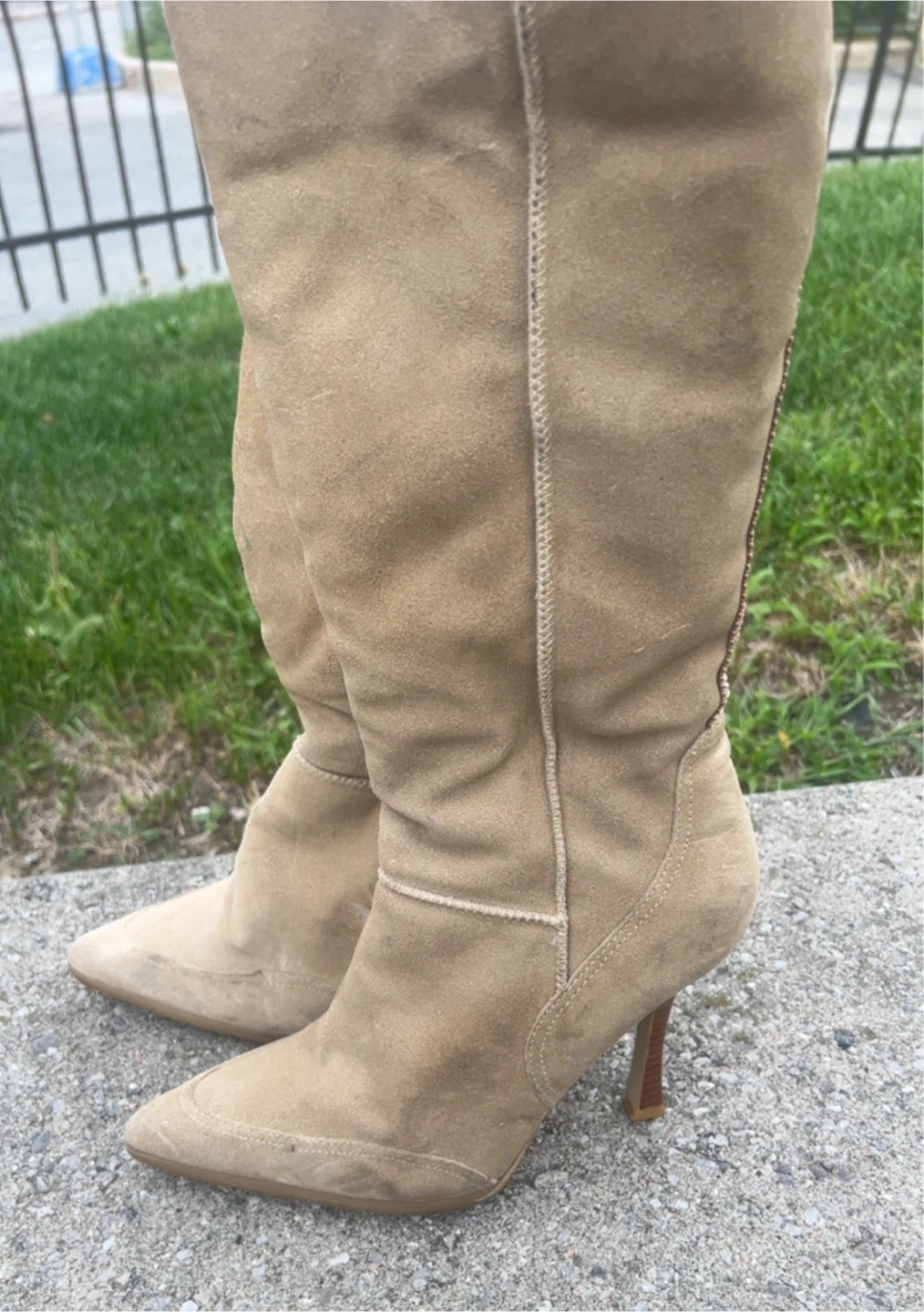 Beige Knee-High Heel Boots size 8 1/2