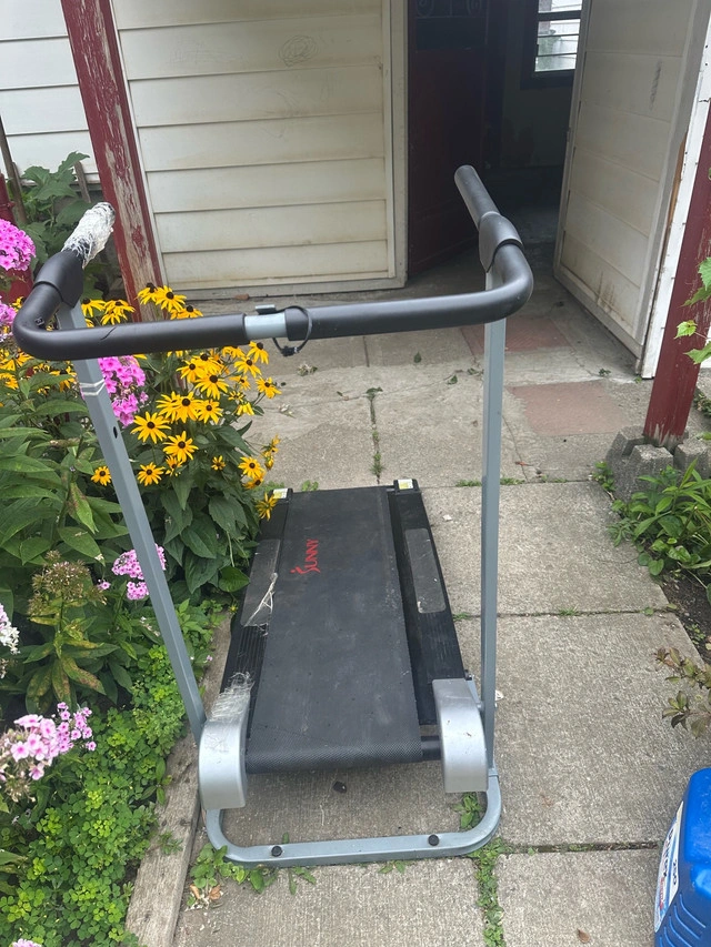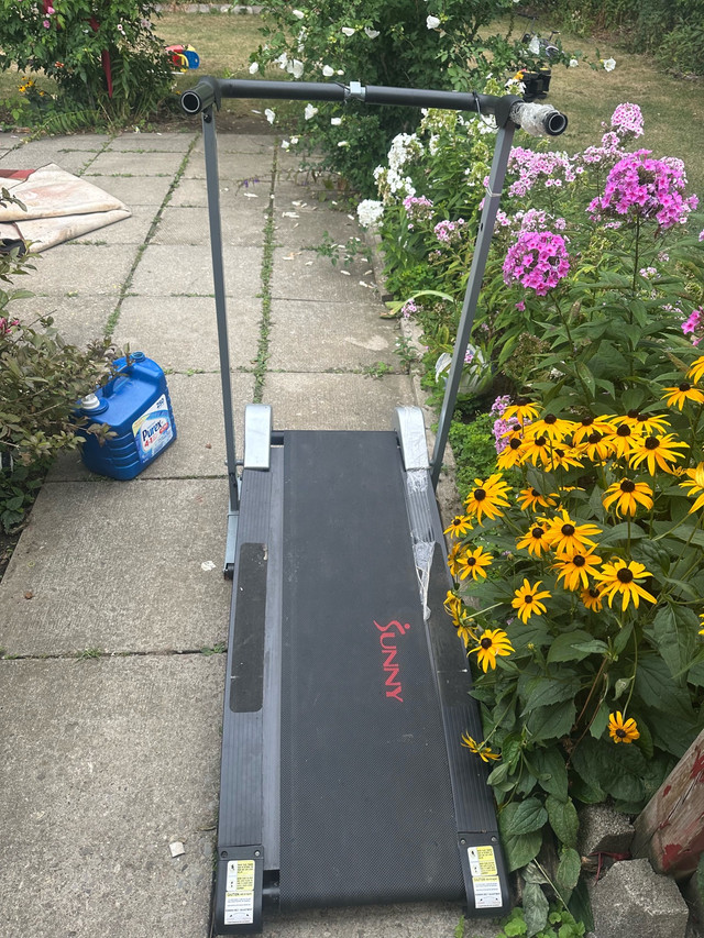 Get your sweat on with this Sunny manual treadmill, perfect for at-home workouts without the need for electricity. This treadmill features a sturdy frame and a no-frills design, ready to help you achieve your fitness goals. This item is used and shows signs of wear from regular use. Additional features include: * Space-saving design * Non-motorized operation * Easy to store I'm pricing this at $75, a fair price based on similar treadmills I've seen.