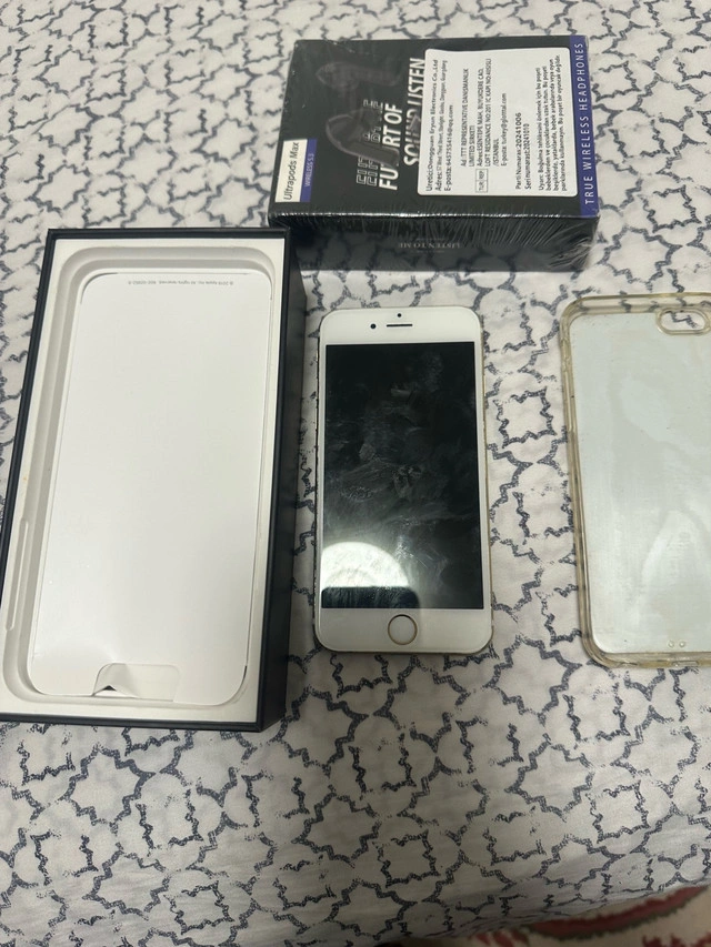 88Selling my Apple iPhone 6S in gold. It's a used device and needs a new battery. Won’t turn on. Additional Specs: * Brand: Apple * Model: iPhone 6S * Colour: Gold I'm asking $80 CAD for this iPhone 6S, which is a fair price considering its condition and features. If the ad is up, it's still available!