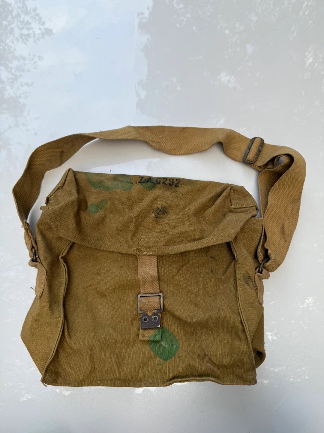 Selling a vintage Satchells Signal No 1 bag with ZA 6292 markings. It has a sturdy canvas construction and adjustable shoulder strap. There are some signs of wear and discoloration, adding to its unique character. Perfect for collectors or those looking for a rugged, vintage bag!