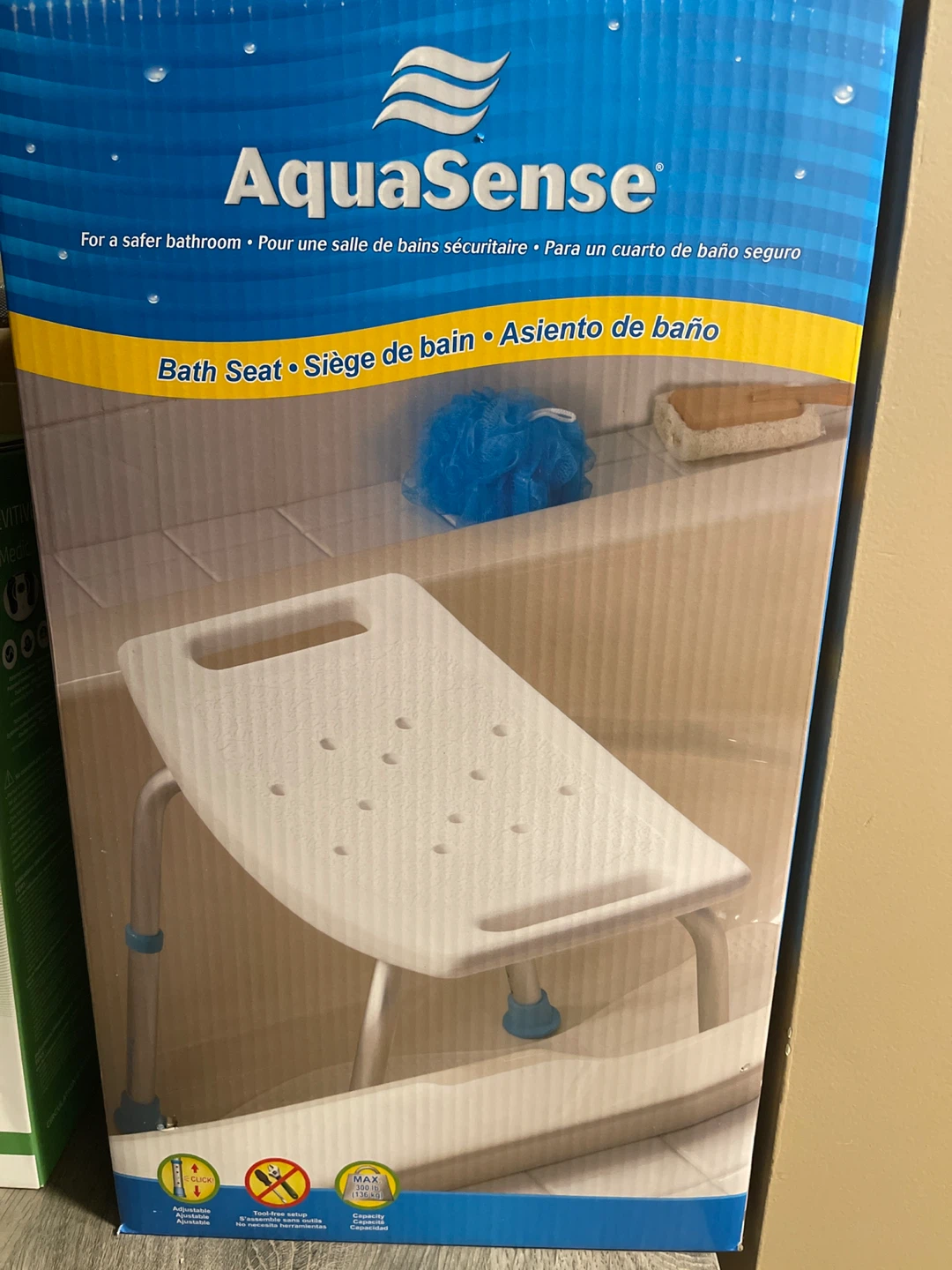 AquaSense bath seat for a safer bathroom experience! Tool-free setup and adjustable height. Supports up to 300 lbs (136 kg)