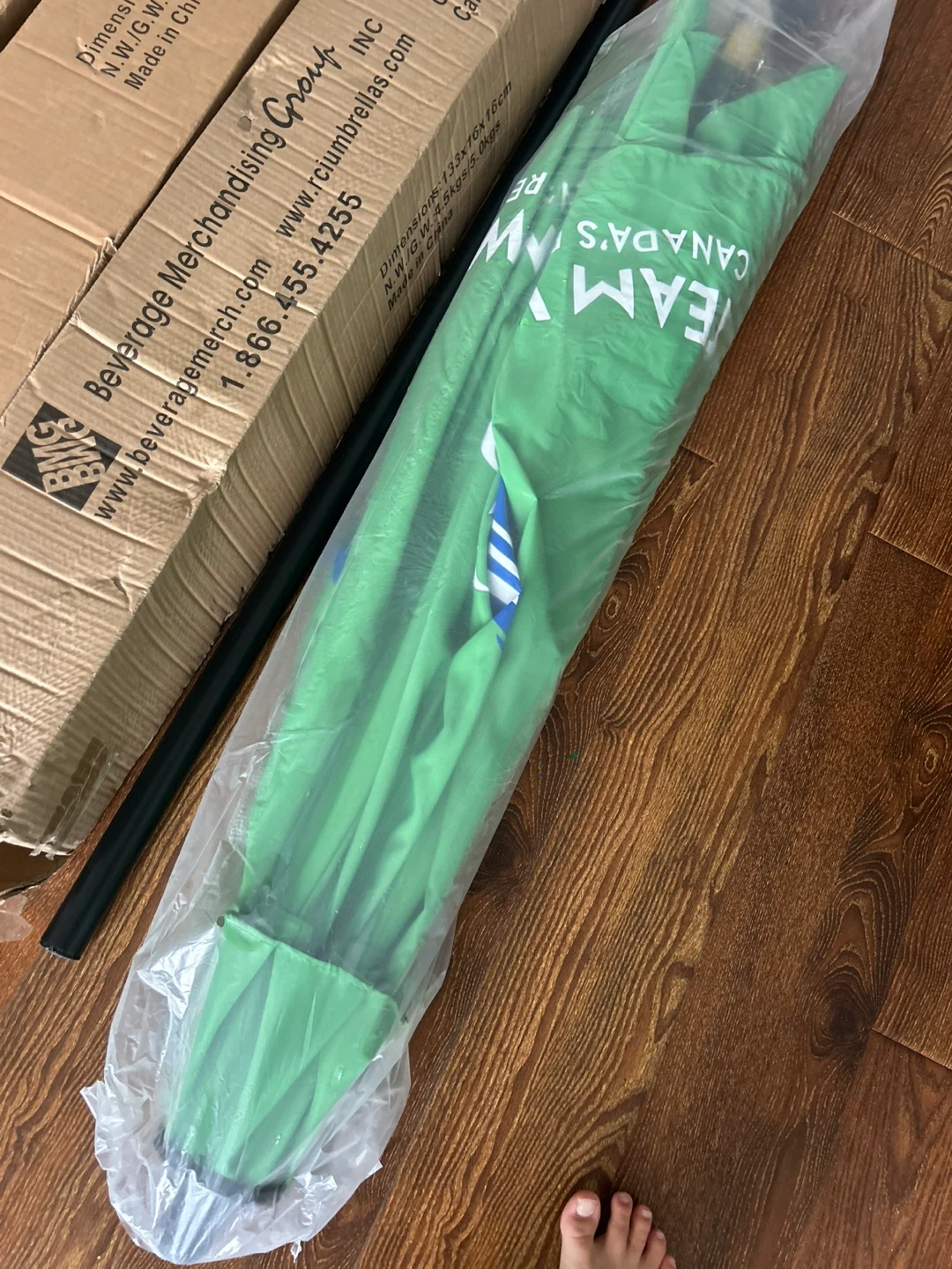 Selling a brand new Steam Whistle patio umbrella, still in its original box! The box indicates the color is green (PMS 362C). Great for adding some shade and Canadian flair to your outdoor space