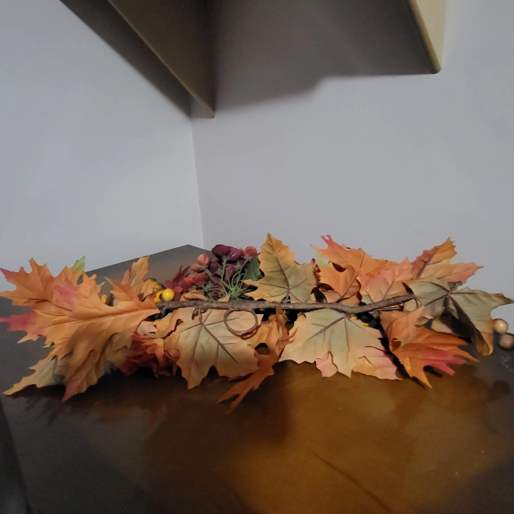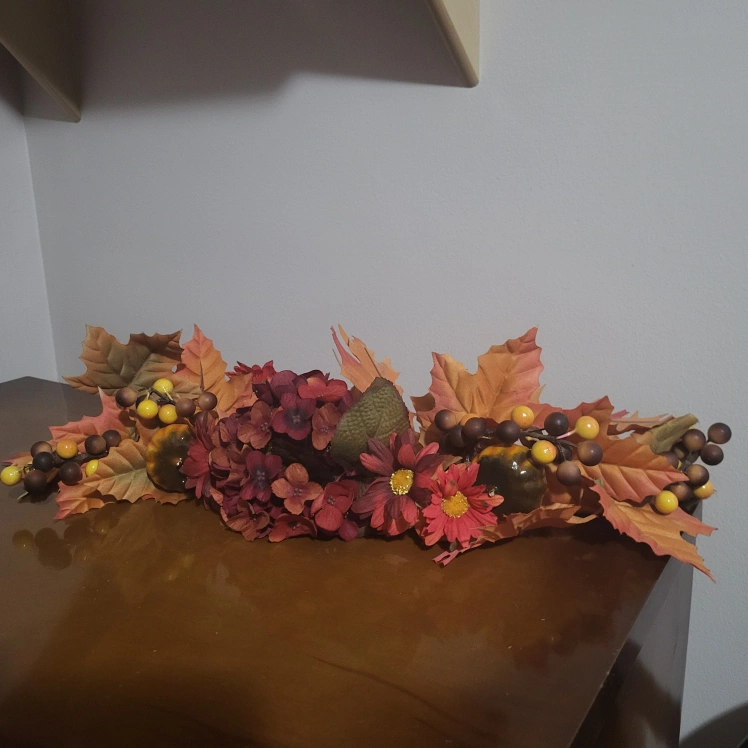 This beautiful fall-themed garland features a mix of autumn leaves and floral accents. It's perfect for adding a touch of seasonal charm to your home decor. Add it to your table or mantle for a warm and inviting atmosphere 20 x 5 inches