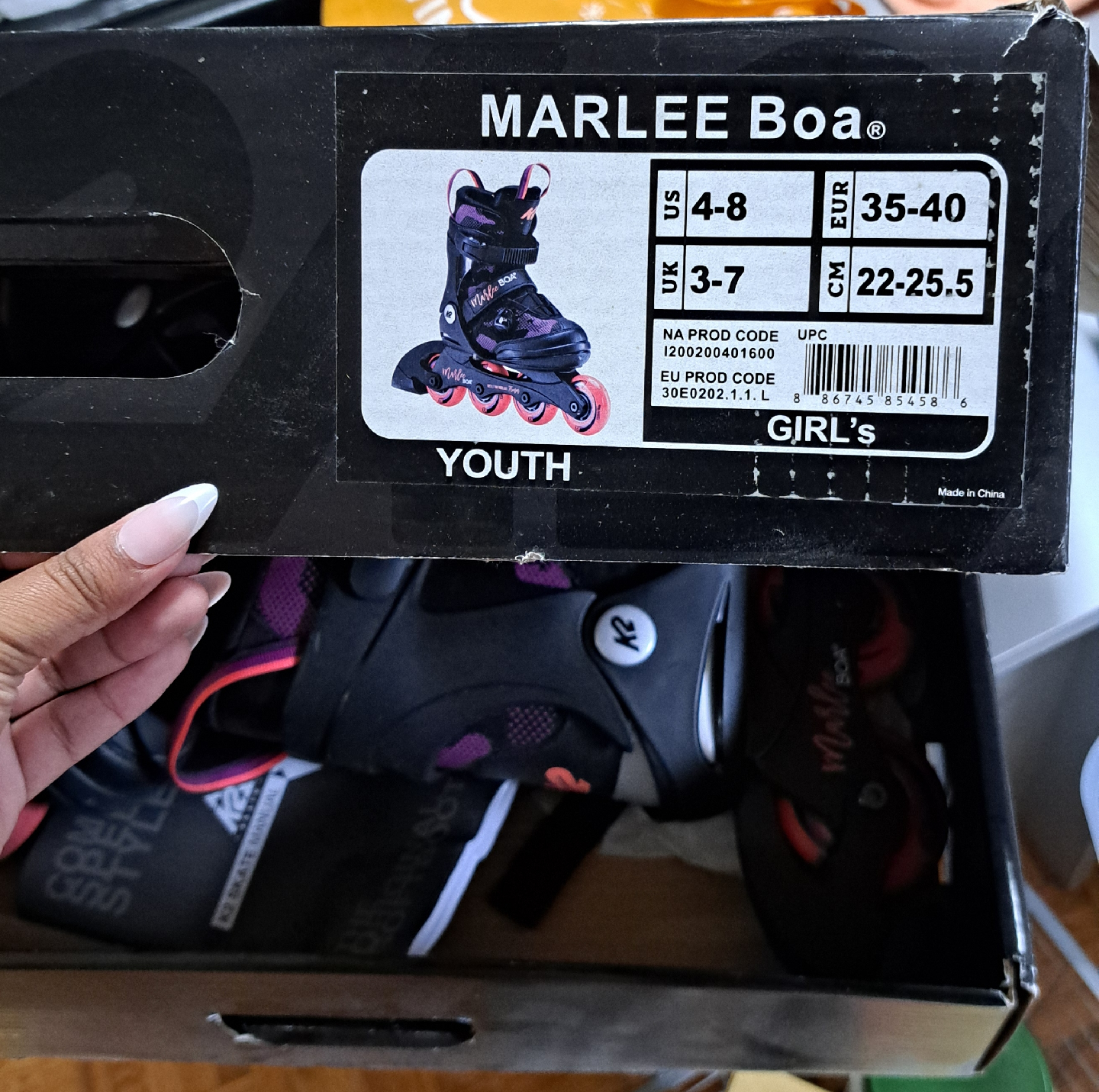 Selling a pair of K2 Marlee Boa inline skates for youth girls! They are in great condition and come with the original box and manual.
