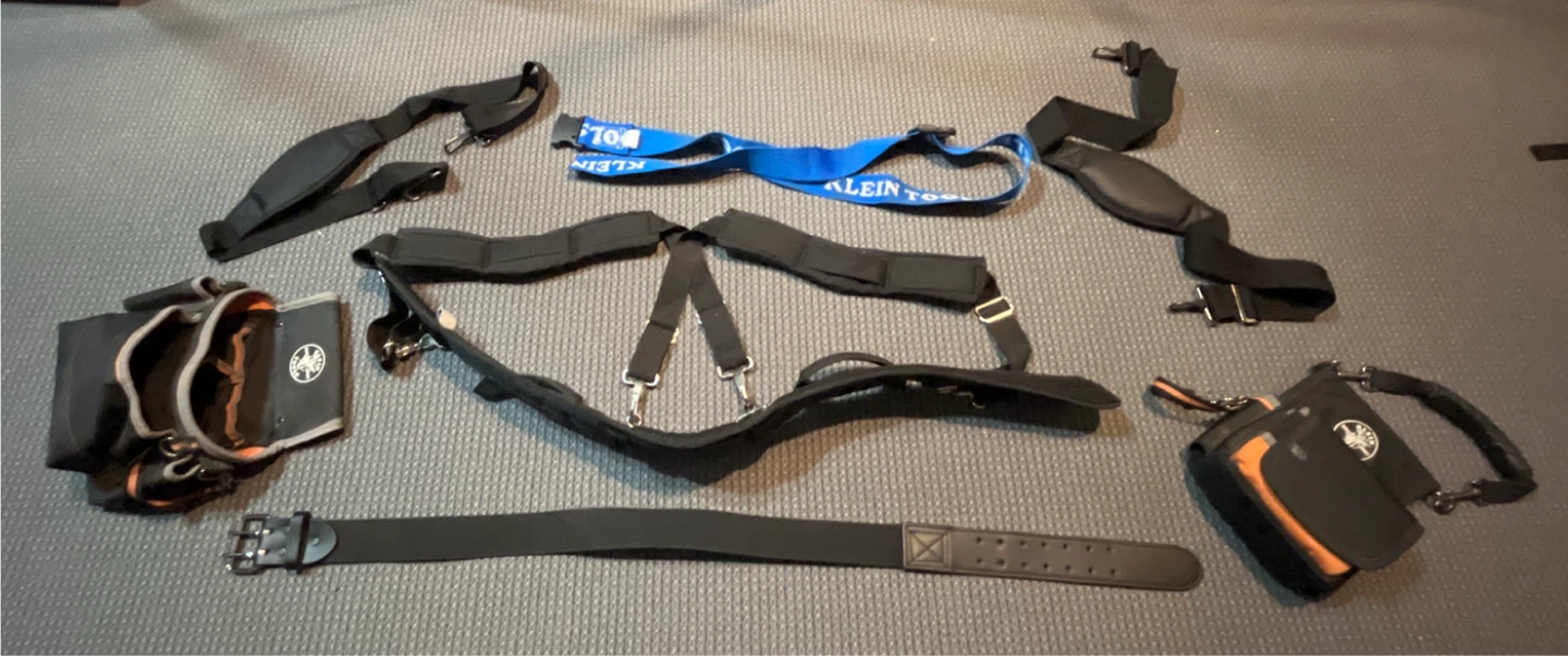 Selling a Klein Tools tool belt setup. Includes various pouches, straps, and the belt itself. Great for any electrician or tradesperson needing a reliable and durable tool carrying system