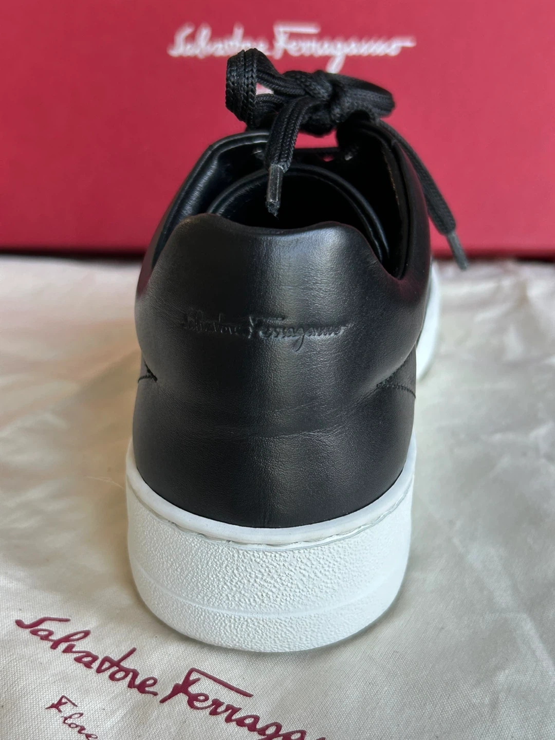 Authentic Salvatore Ferragamo black leather sneakers, size 5.5, perfect condition, with box and dust bag.