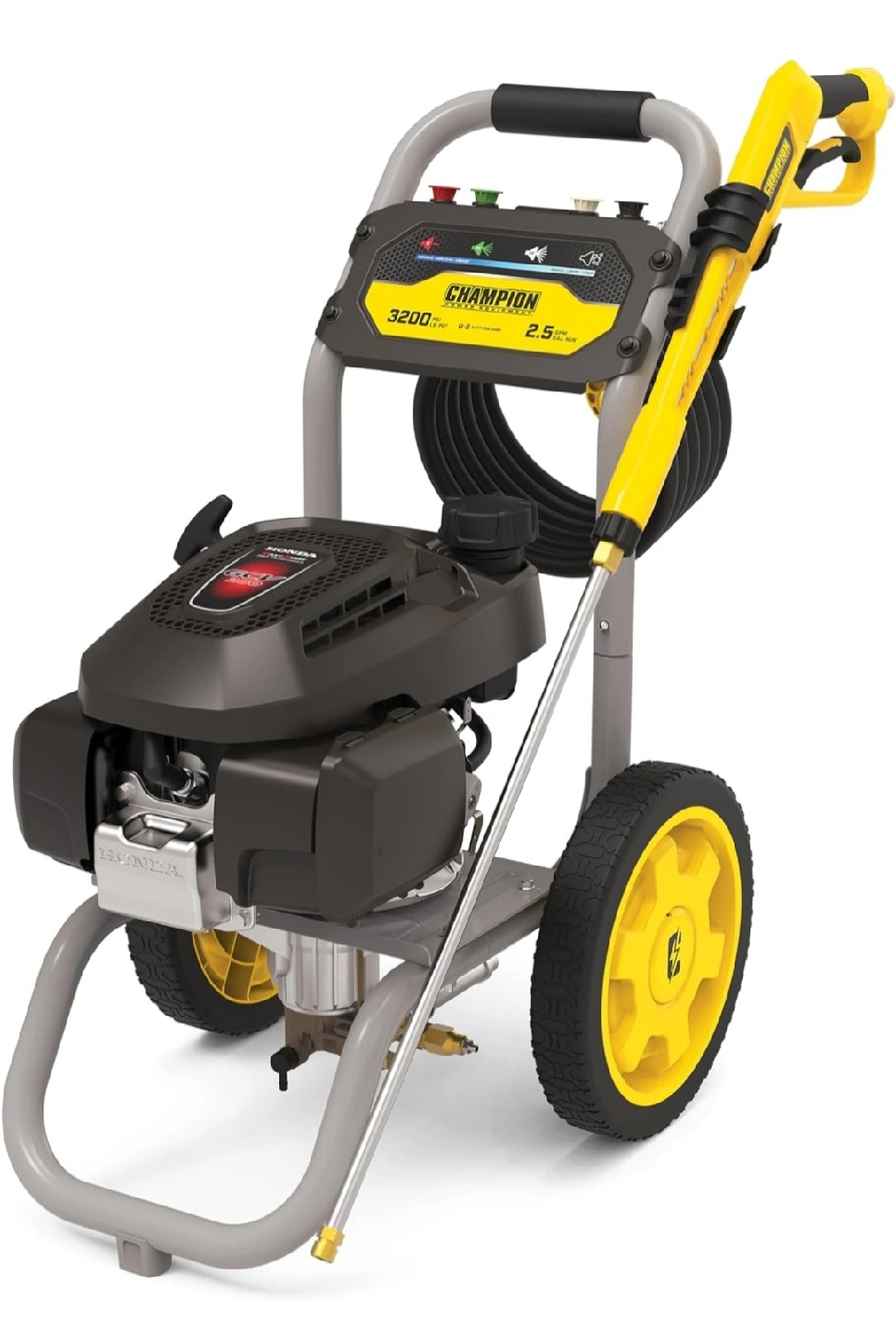Champion Power Equipment 3200-PSI Pressure Washer with Honda GC200 Engine Brand: Champion Power Equipment Power source: gas_powered Colour: Black / Yellow Item weight:52 Pounds Hose length:25 Feet Specification : metEPA 3200 PSI with 2.5 GPM backed by Honda’s 201cc GCV200 engine Quick-connect gun, wand and four nozzles (0˚, 25˚, 40˚, soap), and a 25-foot high-pressure hose Ergonomic comfort grip trigger gun reduces fatigue, plus onboard storage for the high pressure, hose, trigger gun and spray wand High-performance Annovi Reverberi axial cam pump provides consistent cleaning for everyday jobs. Amazon Link: https://amzn.to/4nzwVdp Price Negotiable Note: Need to See Oil Level . Payment mode: Cash Only Door Pick Up