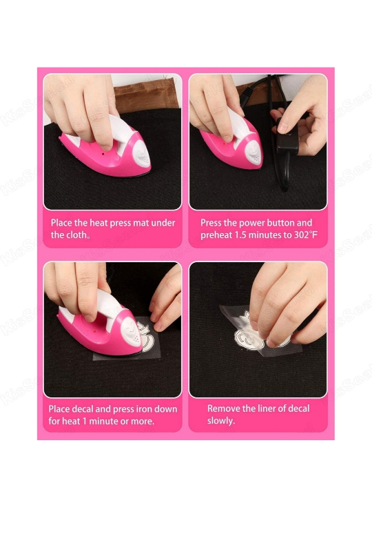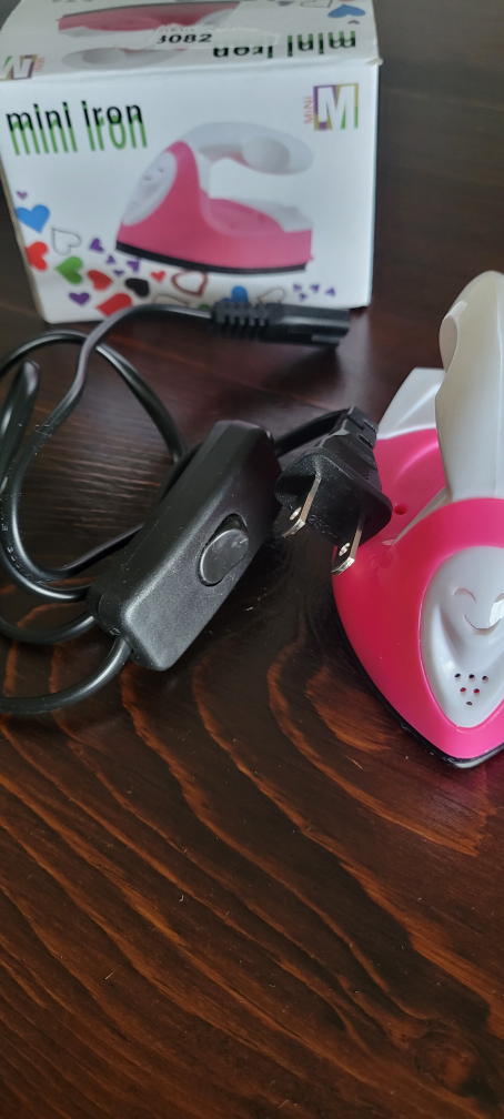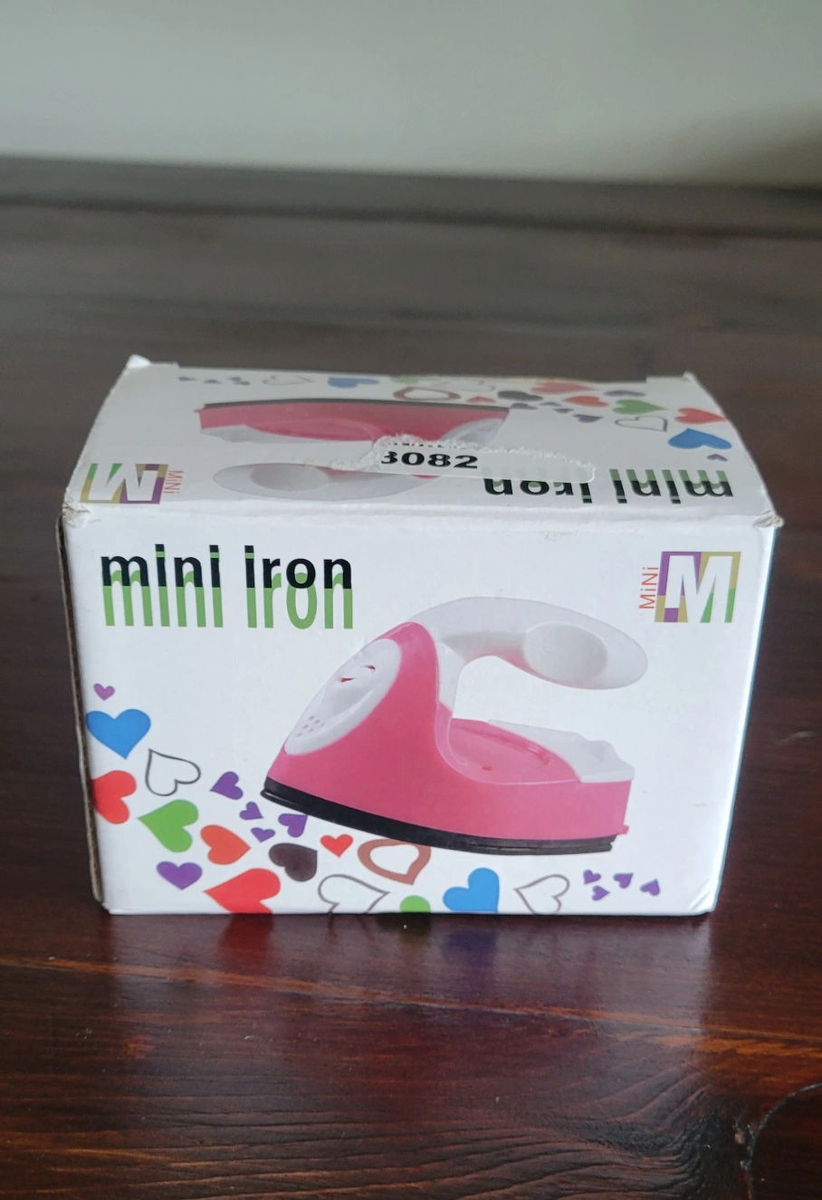 I'm selling a cute mini iron! It's perfect for pressing crafts, knitting, and even heat transfer vinyl. It's pink and white and comes with the original box!