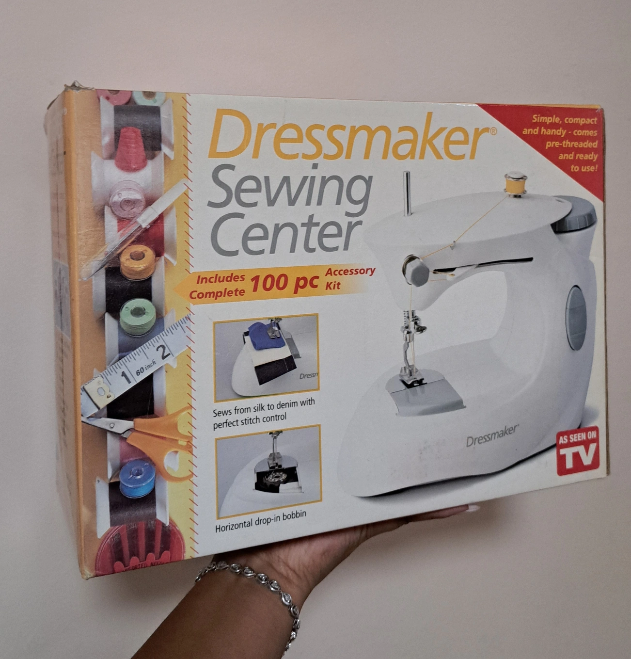 Selling a Sewing Machine that includes many accessories within the kit! It's simple, compact, and comes pre-threaded and ready to use. It sews from silk to denim with perfect stitch control. The control panel features ON/OFF, dual speed, and light.