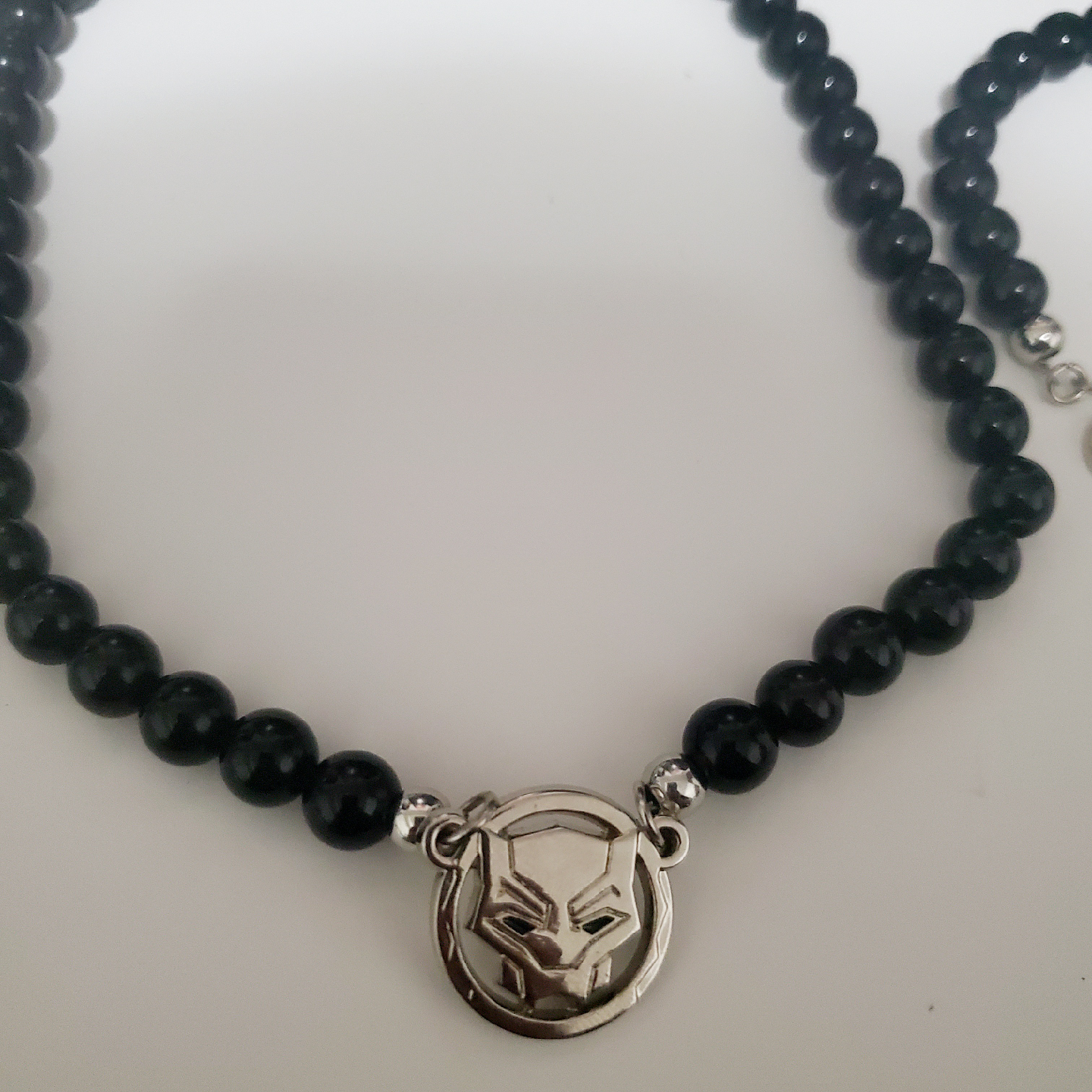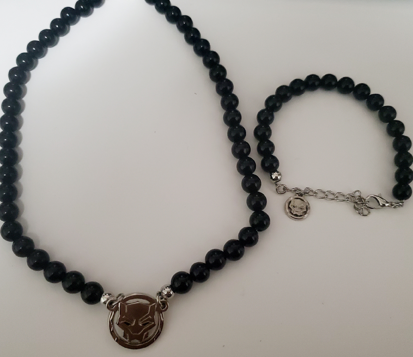 Hi, I'm selling an official Marvel Cineplex Black Panther Wakanda forever beaded necklace and beaded bracelet set.