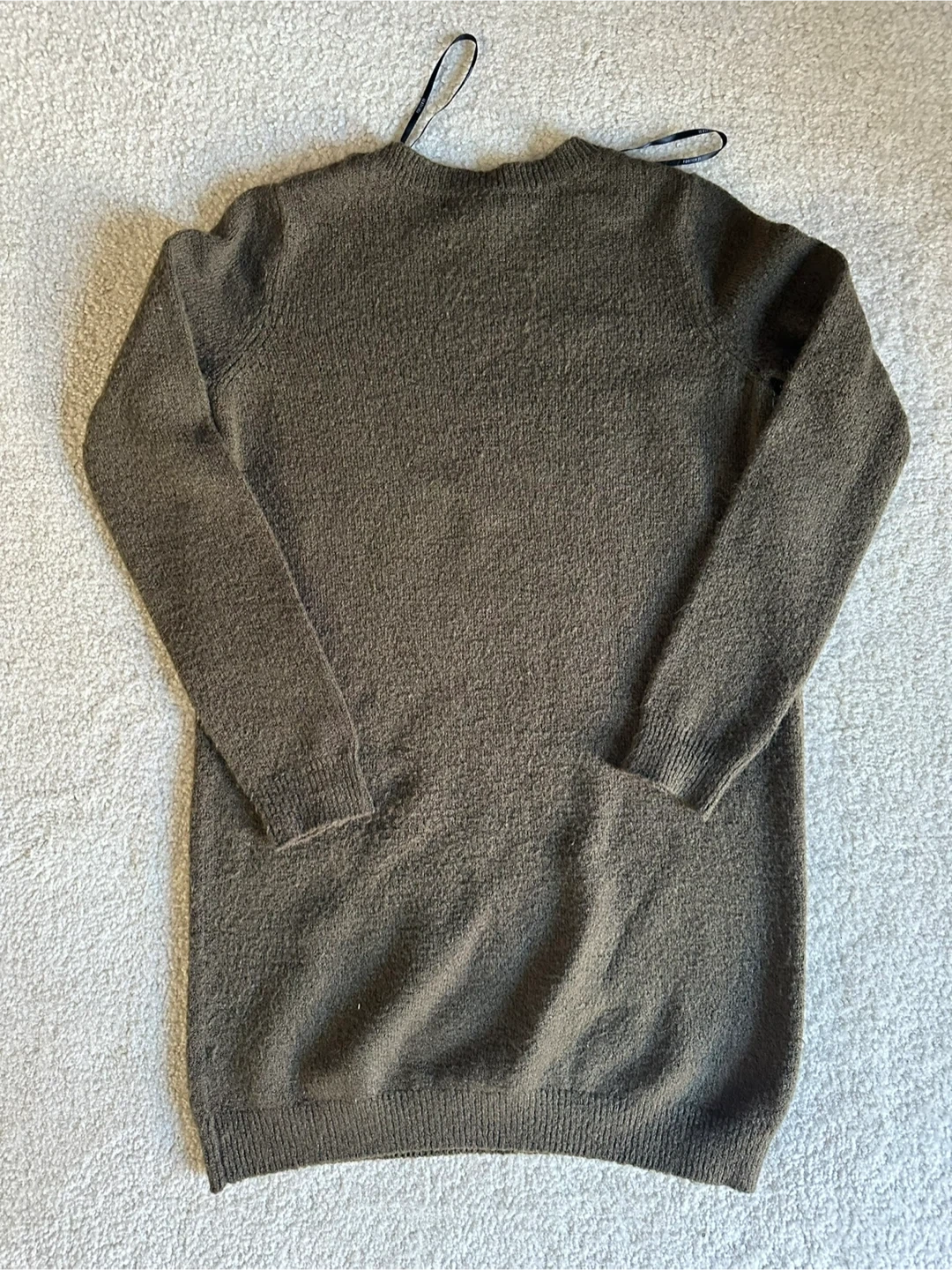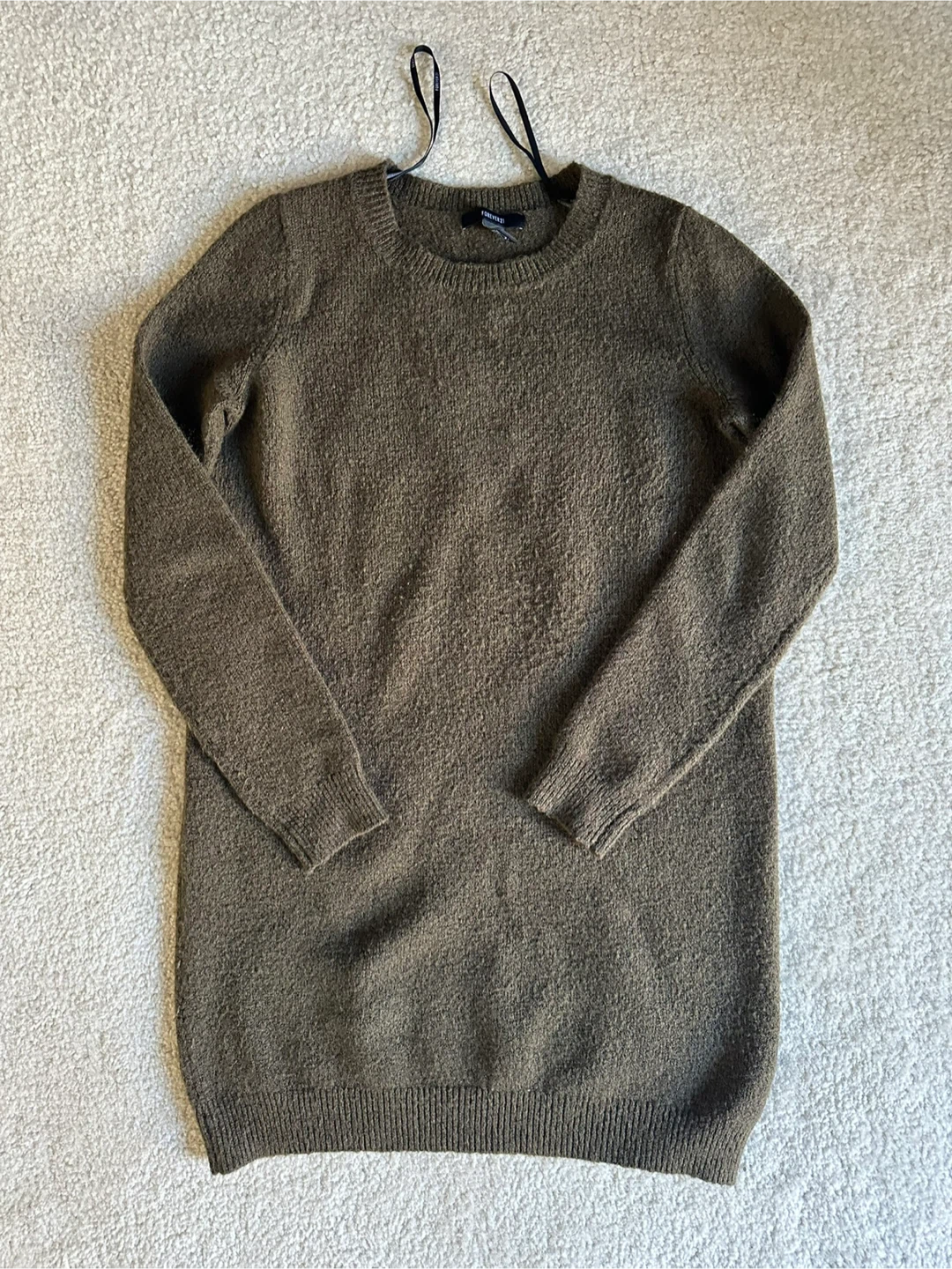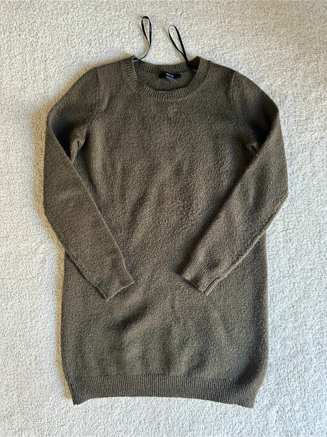 Cozy olive green knit dress! This dress is perfect for layering or wearing on its own. It's in great condition and ready for a new home.