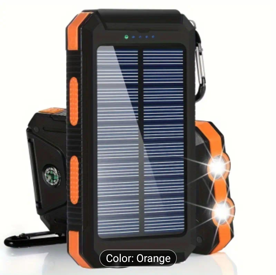 10000mAh Portable Solar Power Bank with LED Light - 2 USB Charging Ports, Durable Black and Orange Design, Rechargeable Lithium Polymer Battery for Outdoor and Emergency Use, Outdoor Power Bank | Durable Battery Case | LED Light Feature, Solar Power Bank