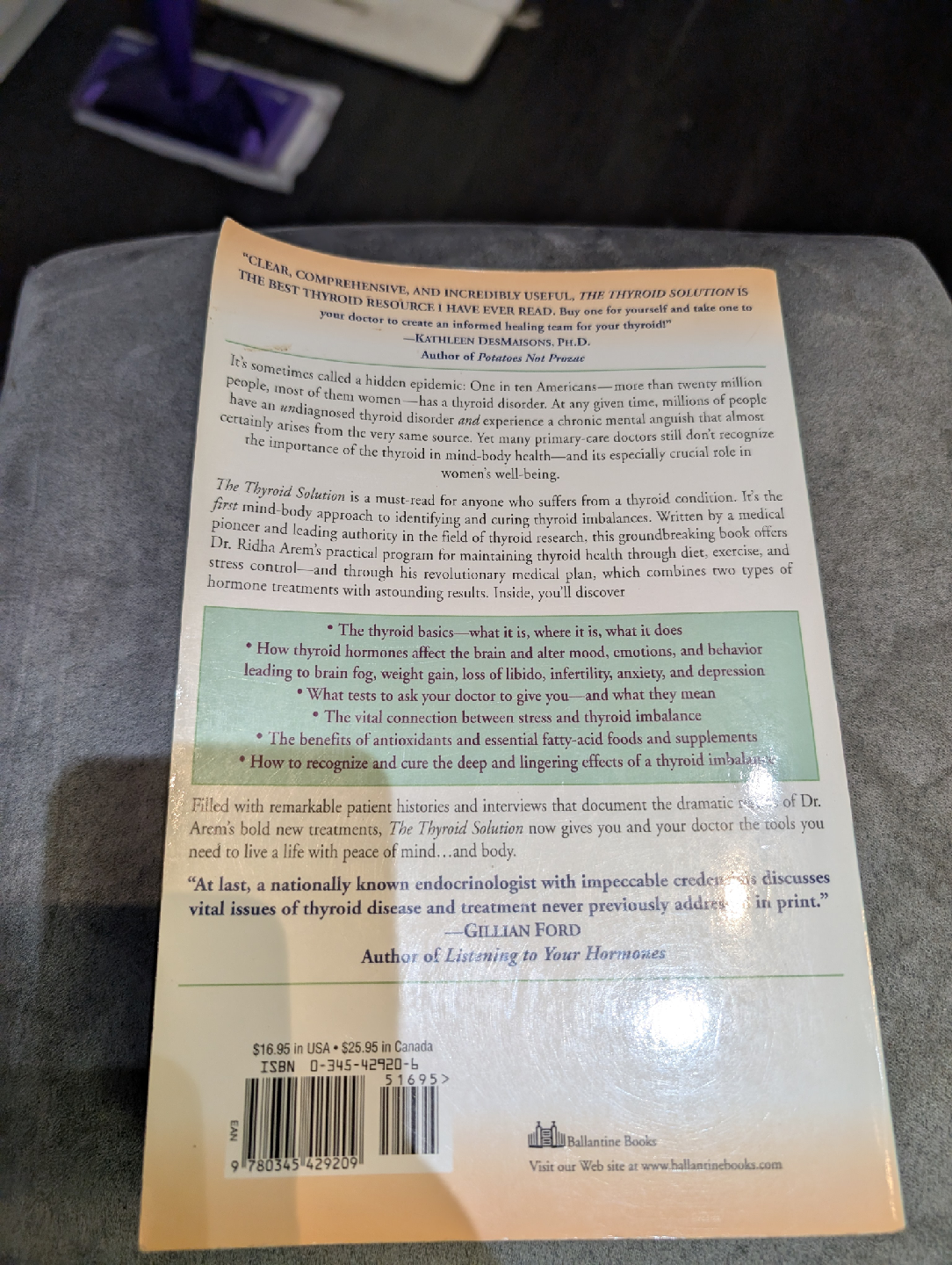Selling 'The Thyroid Solution: A Revolutionary Mind-Body Program' by Ridha Arem, M.D. This book is a must-read for anyone interested in understanding thyroid health and its impact on overall well-being. It explores how thyroid hormones affect mood, energy, and more, along with practical steps for managing imbalances