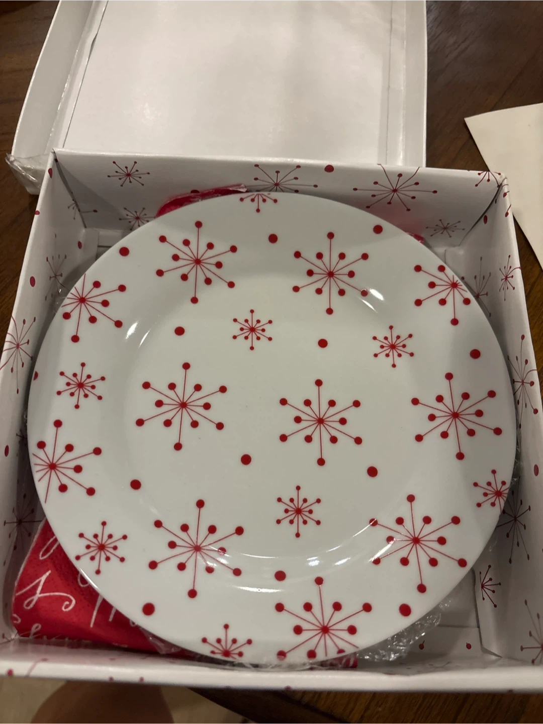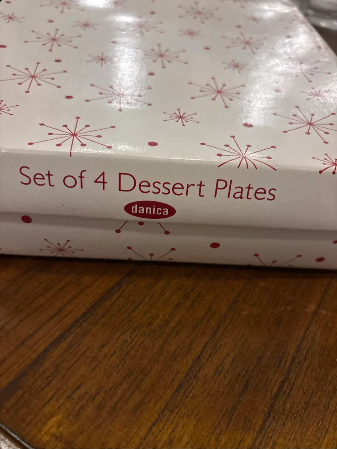 100Selling a set of 4 dessert plates from Danica! They come in their original box and are in excellent condition. The plates have a cute snowflake design, perfect for the holidays or any time you want to add a touch of whimsy to your dessert table
