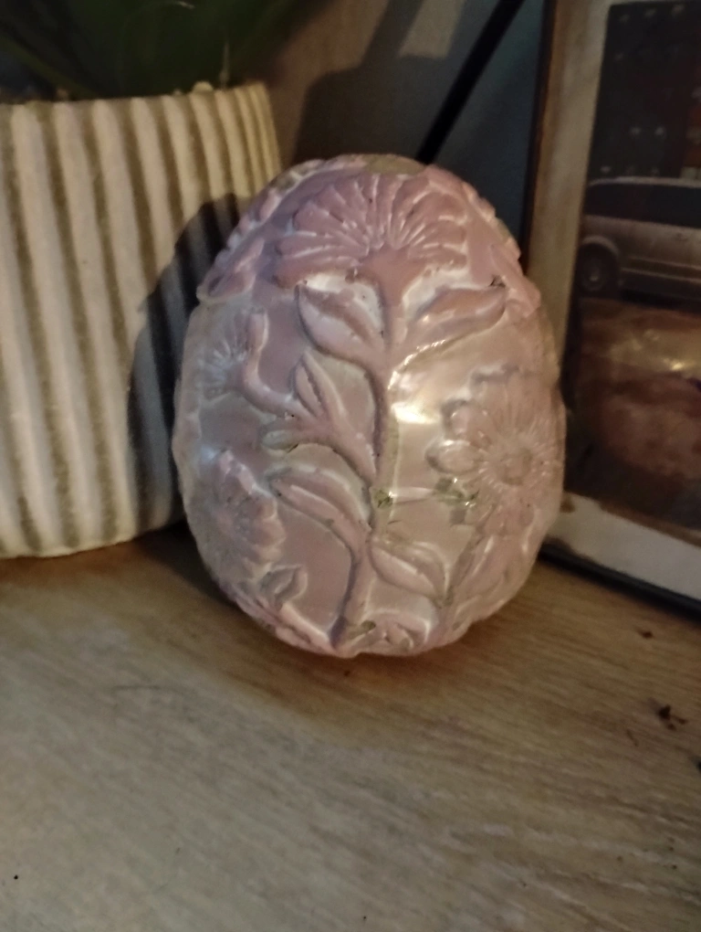 15Selling a decorative egg with a floral design. It's a lovely piece for adding a touch of spring to your home decor!
