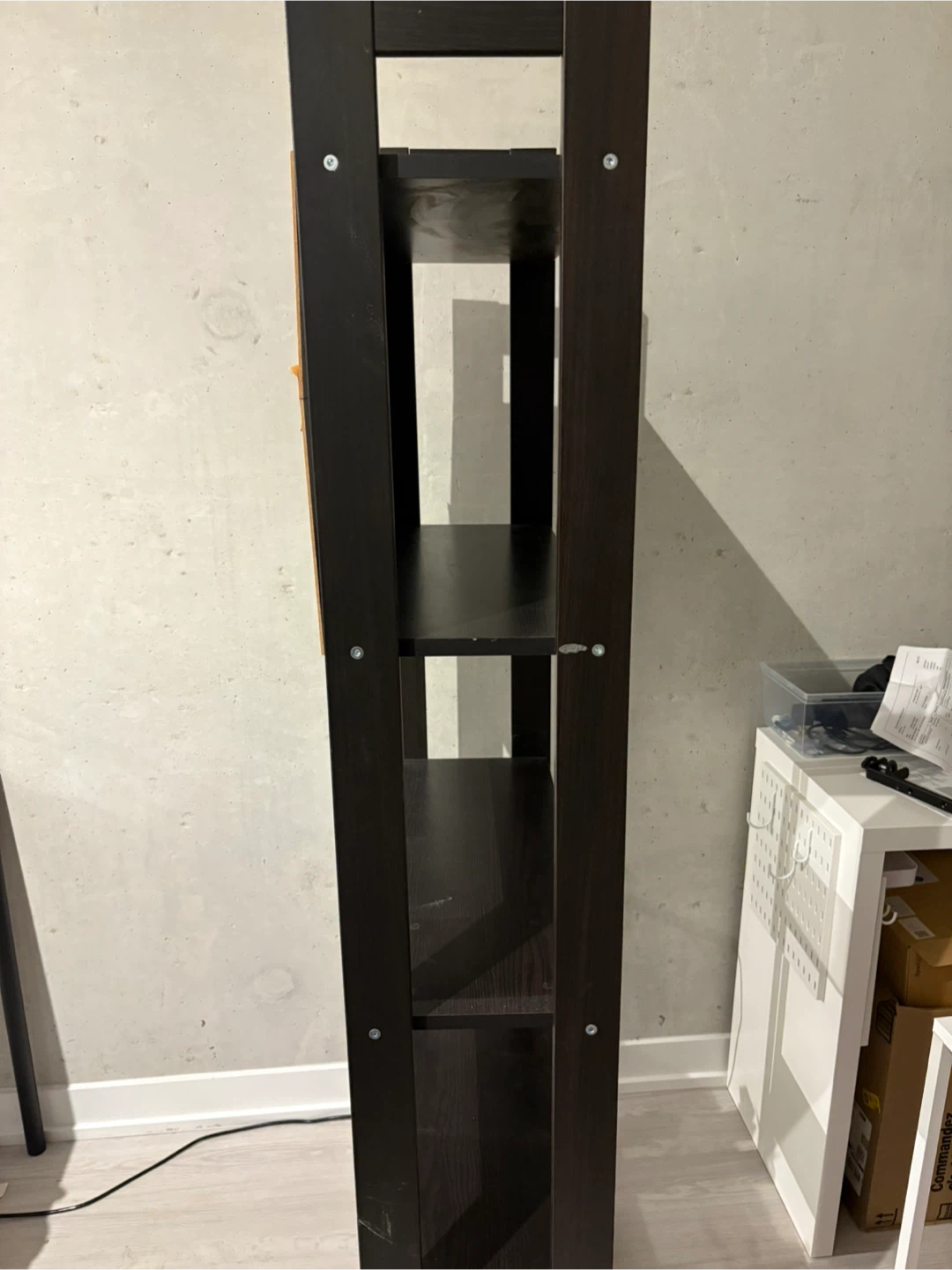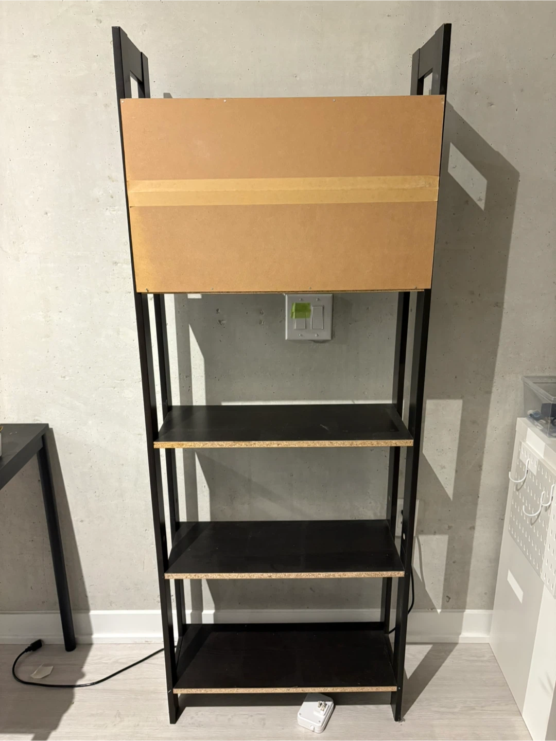 Selling a black ladder bookshelf with 5 shelves. It's in great condition and ready to add some storage to your space. Perfect for books, plants, or decor!