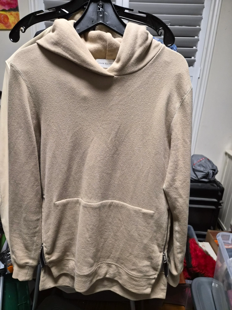 53Cozy John Elliott hoodie in a neutral beige colour! This hoodie features a comfortable fit and a stylish design. Perfect for layering or wearing on its own. It's in great condition and ready for a new home