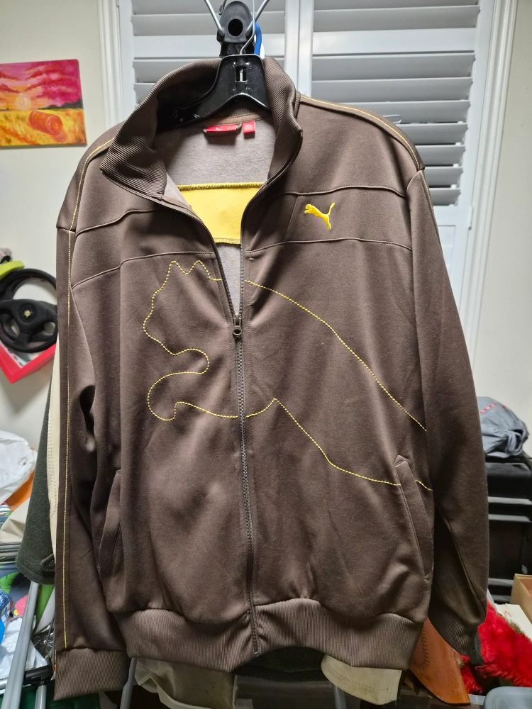 Buy & SellPuma Brown & Yellow Track JacketPuma Brown & Yellow Track Jacket$25Selling a Puma track jacket in brown with yellow accents. It's in great shape and features the classic Puma logo. Perfect for workouts or casual wear!ConditionLike newSizeLarge BrandPuma1 chats·0 favorites·5 viewsSELLERJulieButtonville5310 reviewsWHERE TO MEETCheck Location