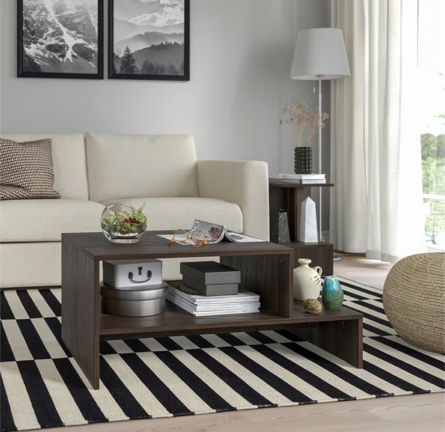 346PICK UP ONLY Selling a coffee table from IKEA. HOLMERUD coffee table has a distinctive architectural shape that will draw attention. The design also offers practical, open storage spaces where you can display your things and keep them close. It has a handy shelf underneath for storage or display