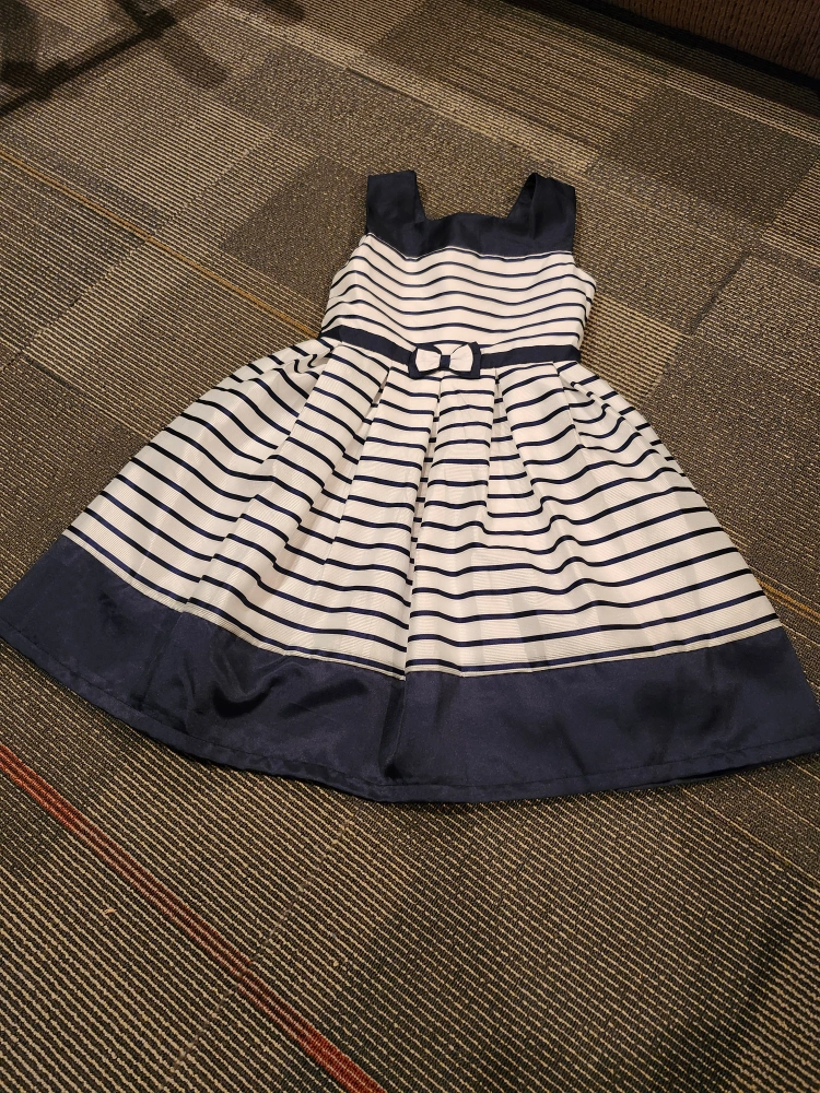 white and navy blue dress wore a few times looks band New size 8 machine wash . Navy blue pants from old navy skinny never wore just washed them.