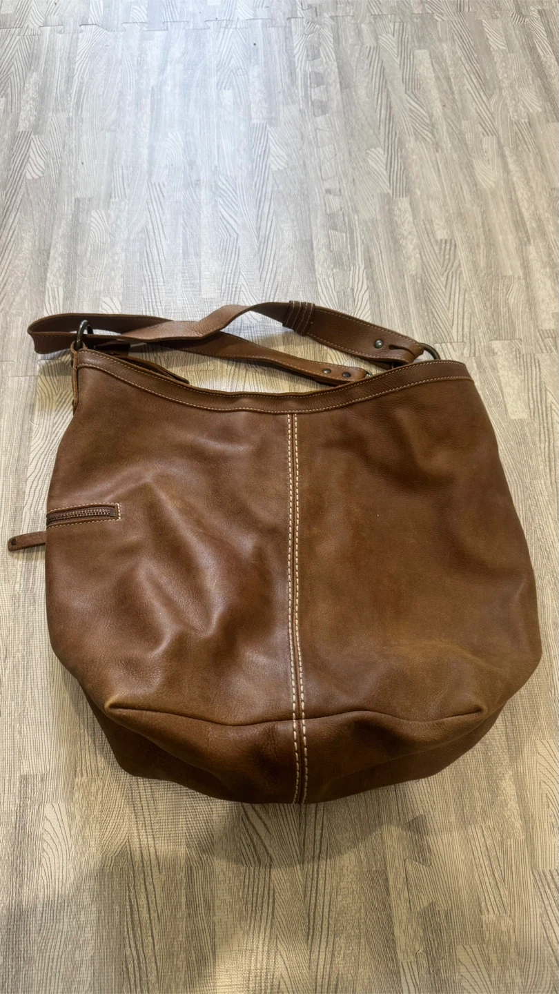 Selling a Roots brown leather hobo bag! It's in great condition and has lots of room. Perfect for everyday use or a weekend getaway. The leather is soft and durable, and the bag has a classic, timeless style