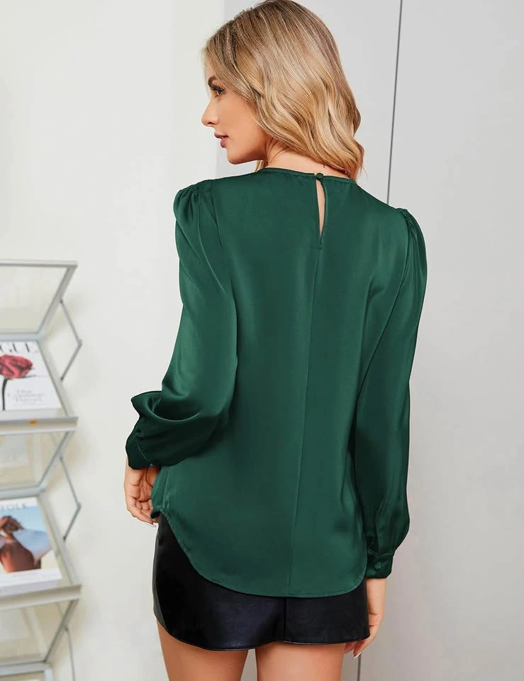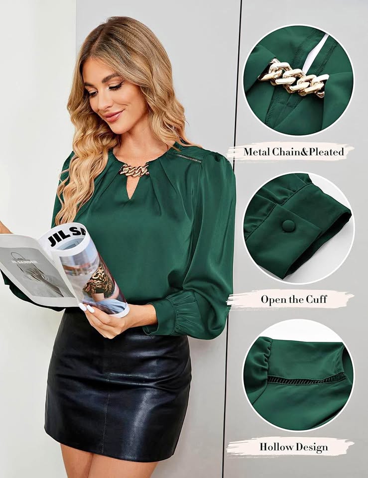 Brand new JASAMBAC Women's Satin Silk Blouses, Dressy Casual Long Sleeve Shirts, Elegant Keyhole Neck Business Work Office Tops