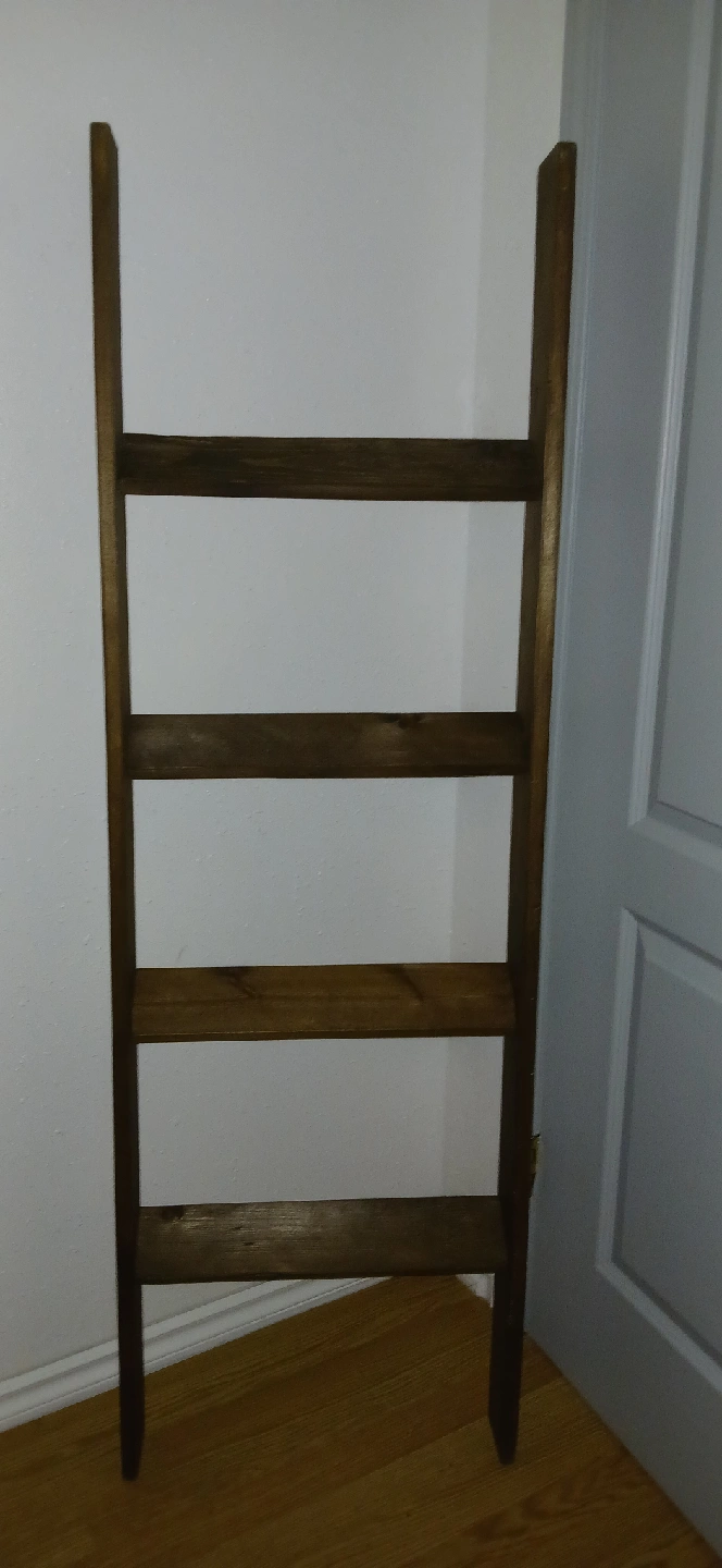 Selling a wooden decorative ladder. It's in good condition and would be a great addition to any room. Perfect for displaying blankets or towels!