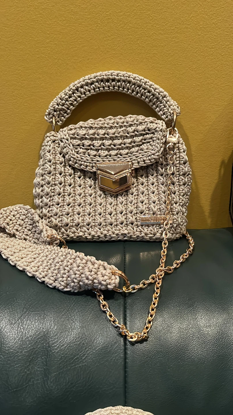 Selling a stylish Morffrey handbag! It features a unique macrame design with a gold-tone chain and hardware. Perfect for adding a touch of elegance to any outfit