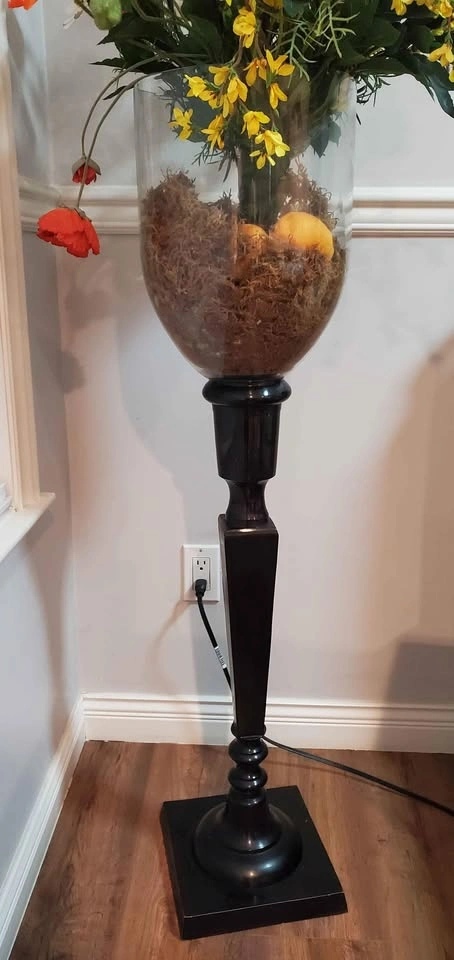 66"H from bottom to top flowers, 23" W(flowers) in the clear bowl(10.5" Diameter).