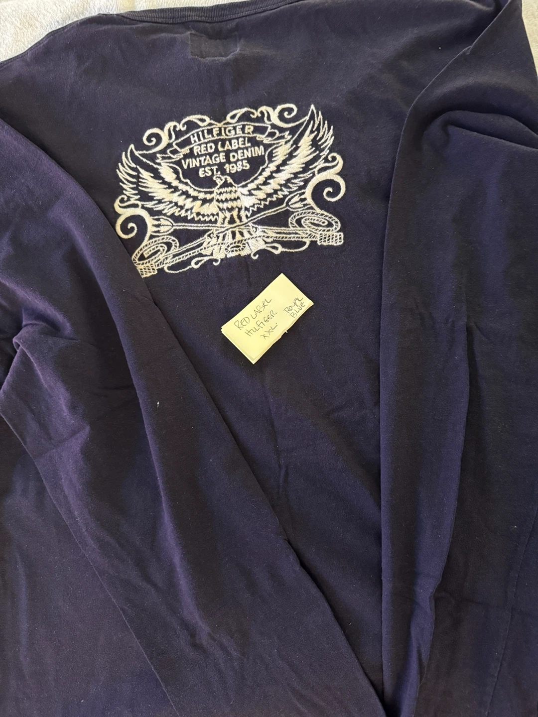 Tommy Hilfiger Red Label Vintage Denim shirt in XXL and royal blue! This shirt features a cool eagle design on the back and is in great condition