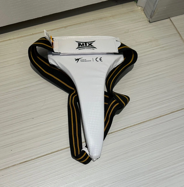 553Groin protectors ($10 each, male or female), shoes ($15), arm guards ($10, size L and XL), and leg guards ($10, size L). Most items are new.