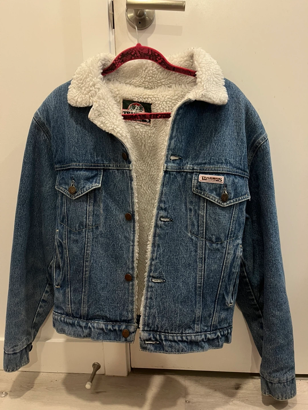 Classic denim jacket from Trailways Apparel! This jacket features a cozy sherpa lining and collar, perfect for cooler weather. It's in great condition and ready for a new home
