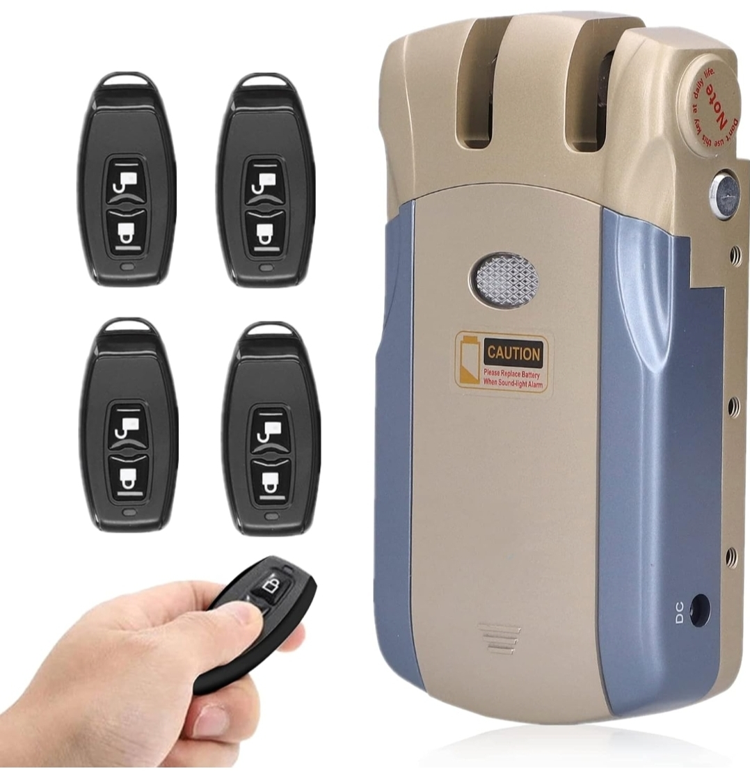 【For Home Inside Security】Invisible door lock, with dual circuit, high performance, fast identification, dry battery power supply. This lock can avoid the occupation and theft in your home. It is only operated by remote control and is placed inside the house, which is more safe.