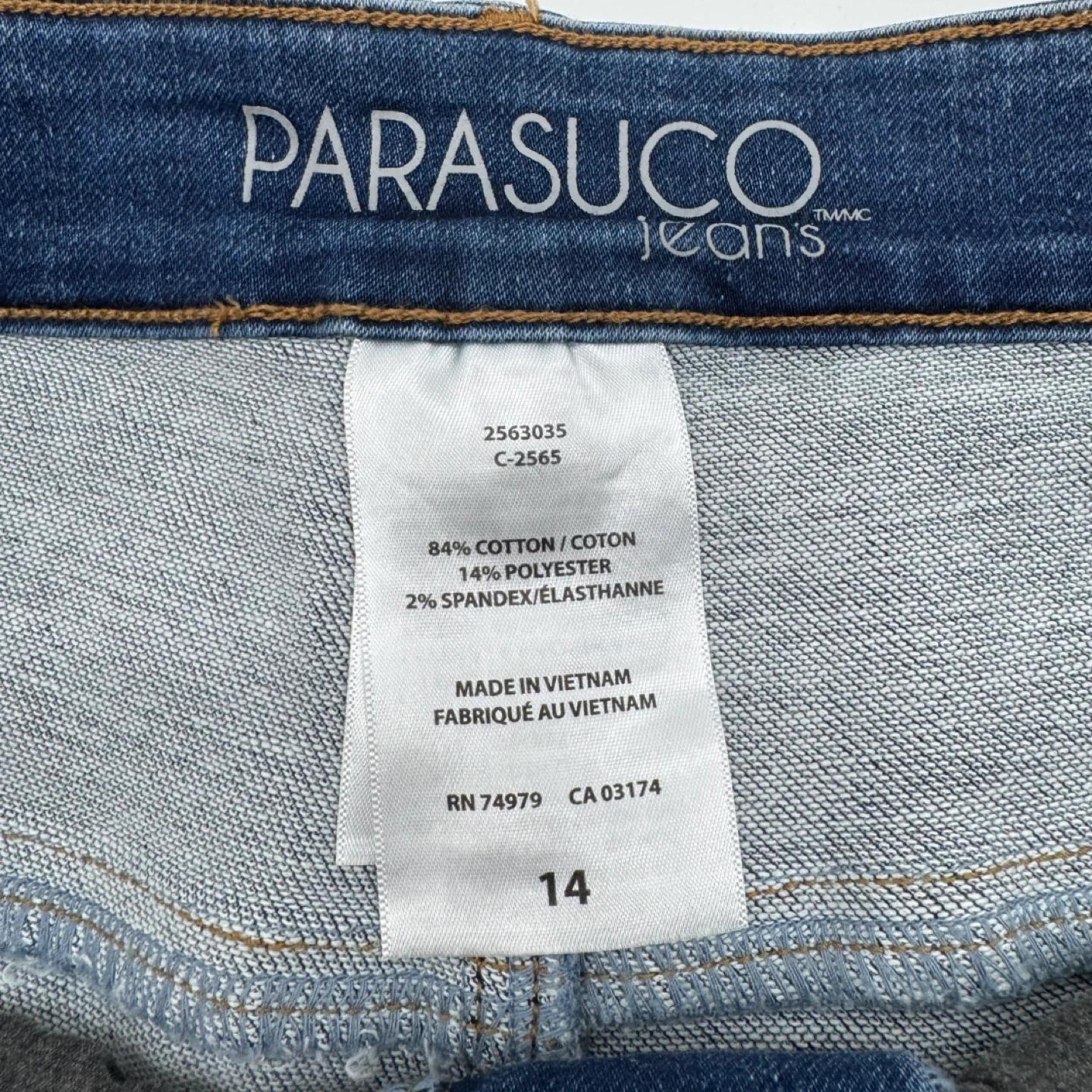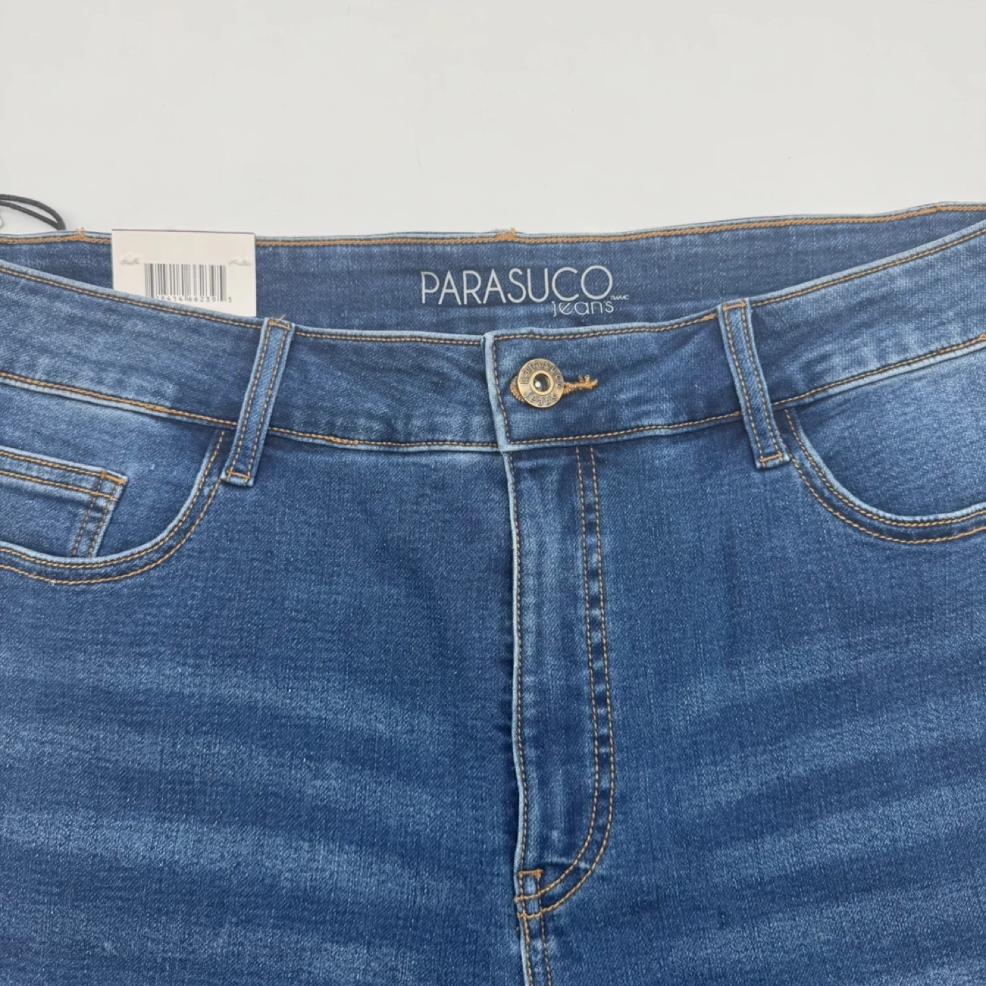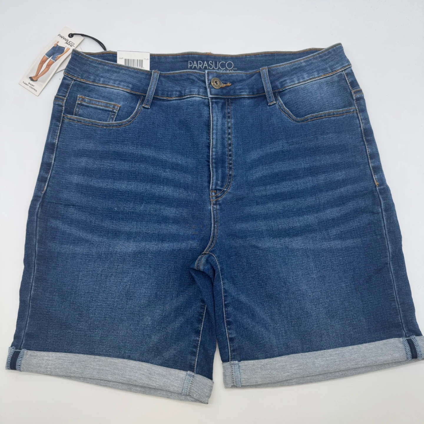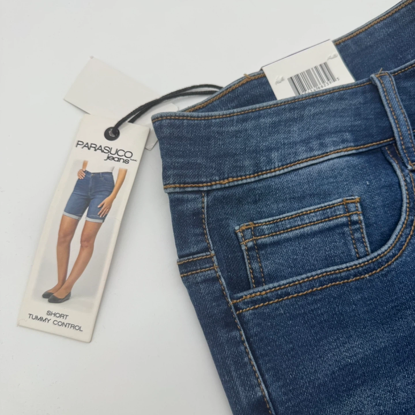 93Women's Parasuco Jeans Bermuda denim shorts with tummy control for a smooth and flattering fit. Classic 5-pocket design with zip fly and button closure, folded hem, and a mid-rise cut. Made from a comfortable stretch fabric that moves with you - perfect for casual everyday wear. • Size: US 14 I Material: 84% Cotton, 14% Polyester, 2% Spandex Made in: Vietnam • Color: Medium Blue Wash • Vintage: No - modern style * Condition: New with tag • Pickup in North York Delivery available for extra CL35