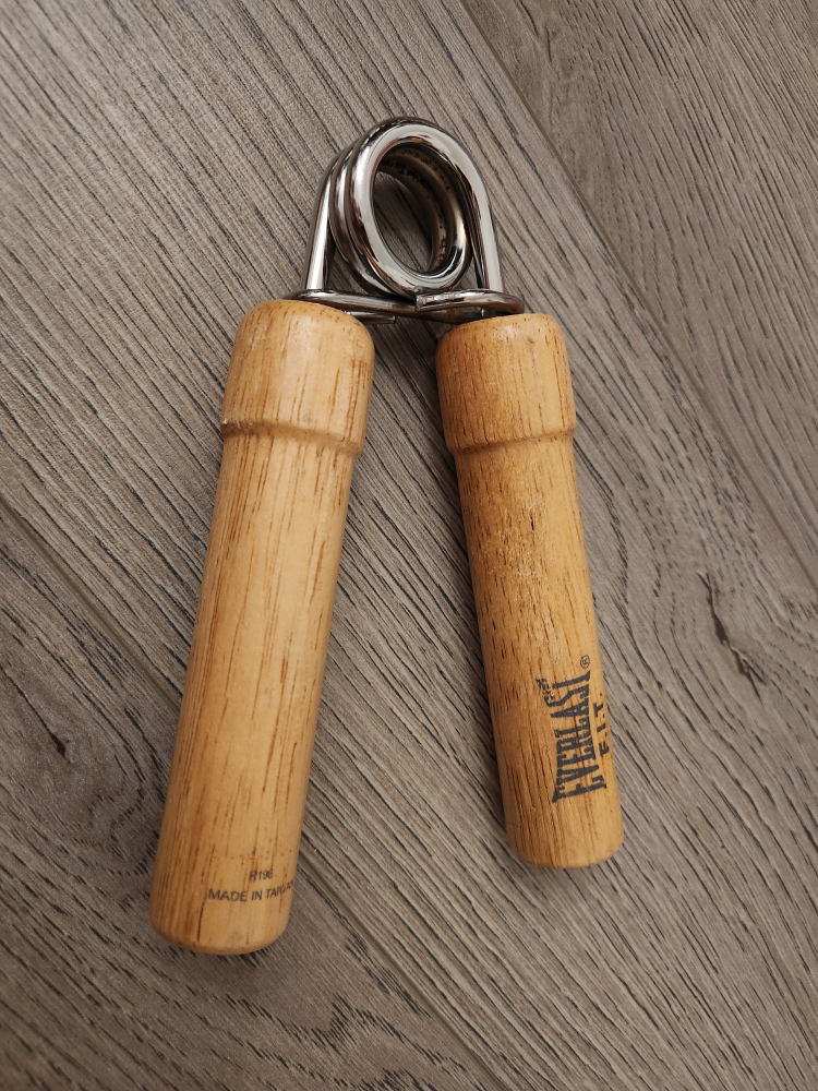 Selling an Everlast F.I.T. hand gripper! It's in great shape and ready to help you build your grip strength. The handles are made of wood, and the spring is nice and sturdy.
