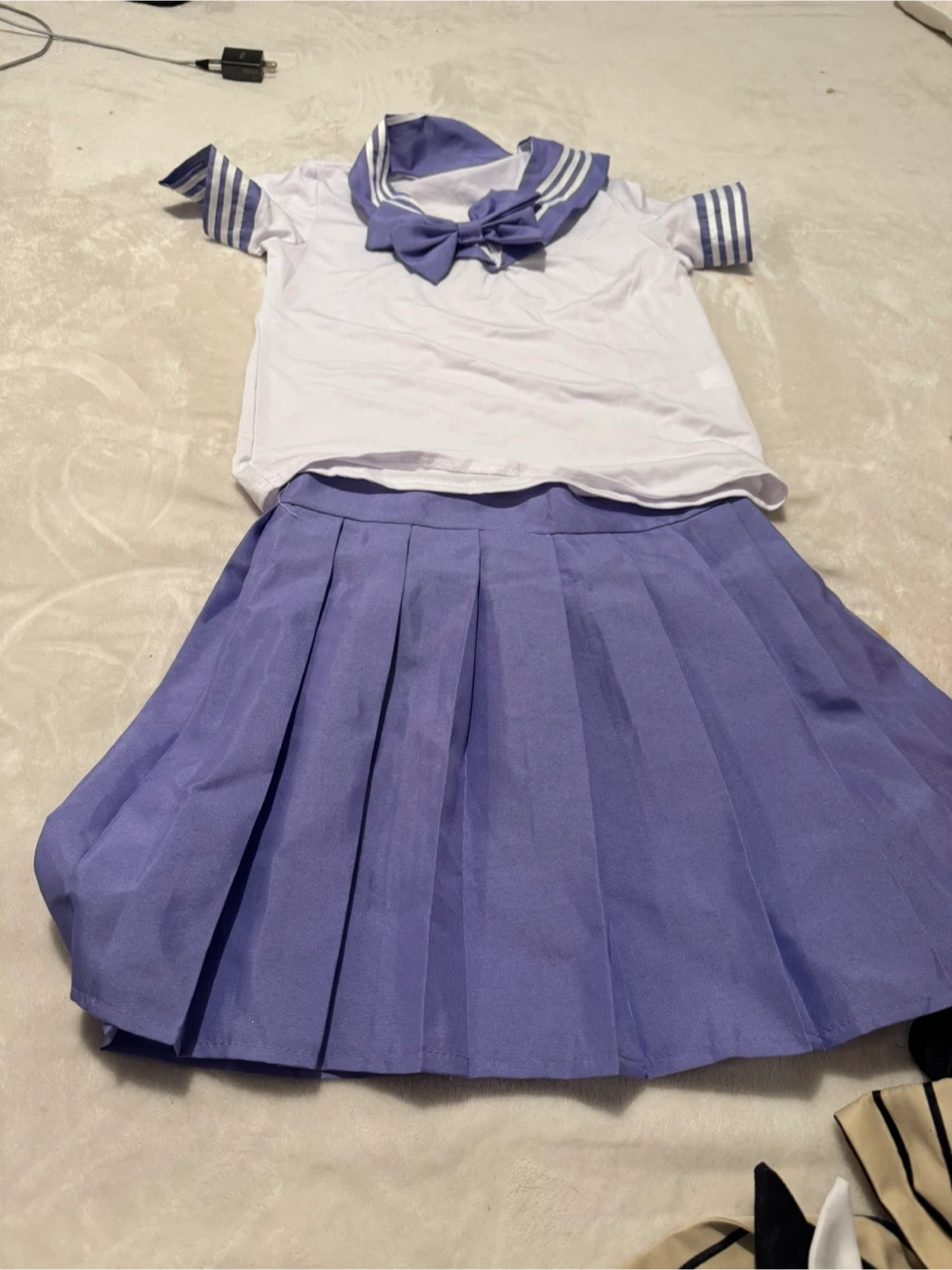11Selling a cute sailor school uniform! It's a white top with a purple collar and a matching pleated purple skirt. Perfect for cosplay