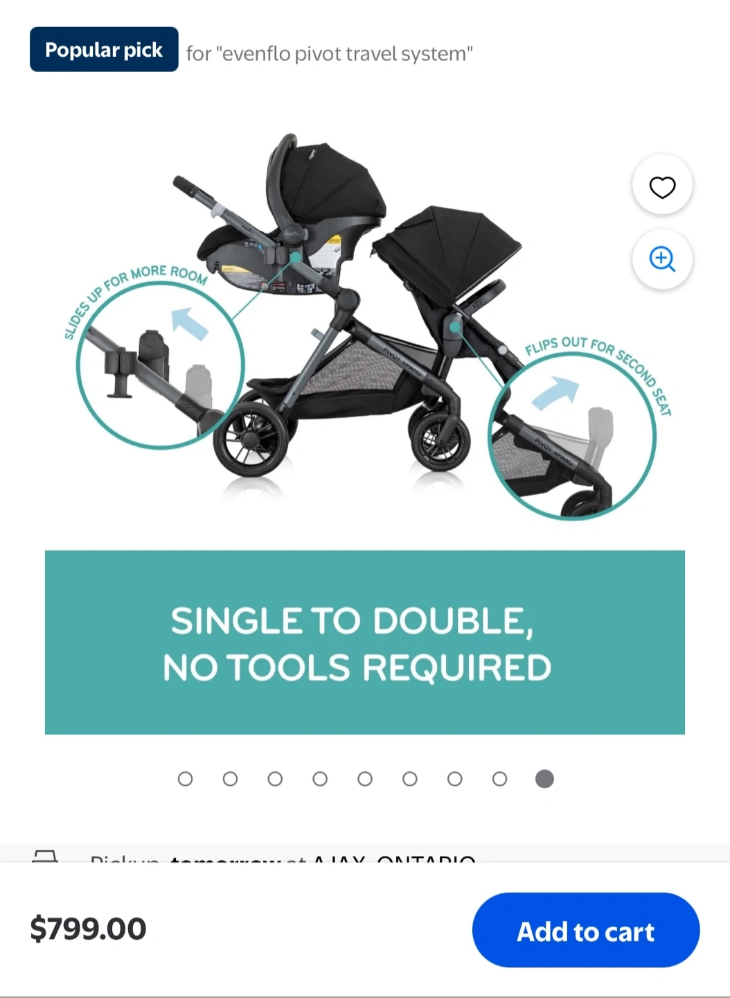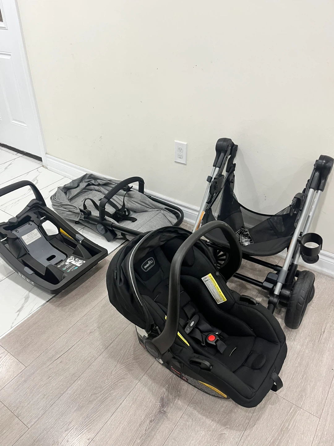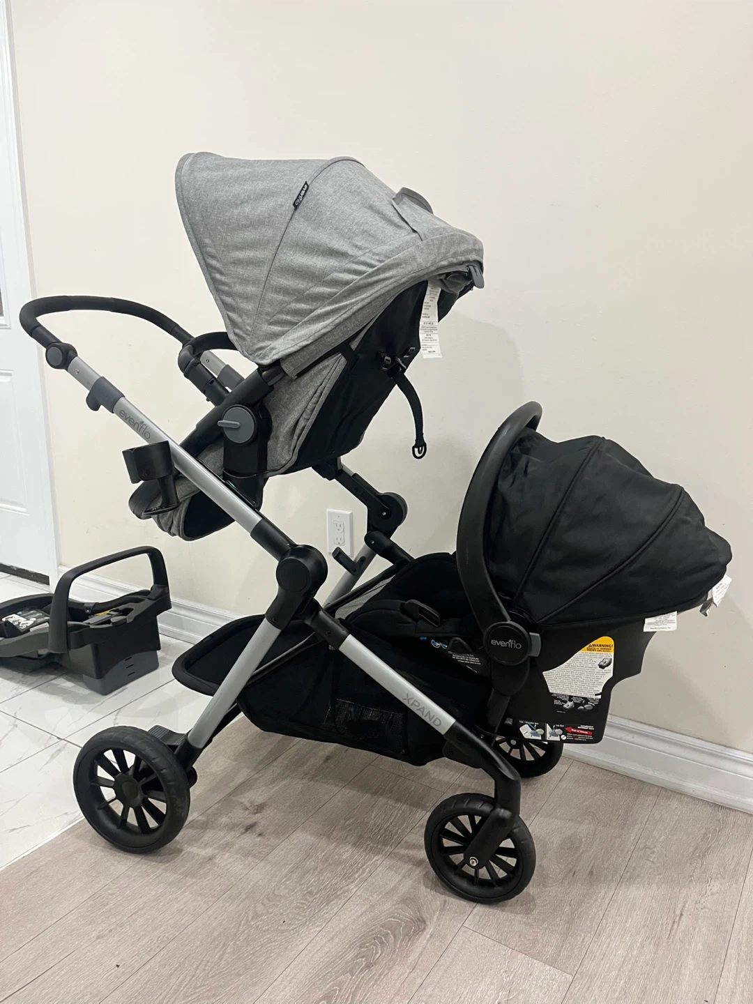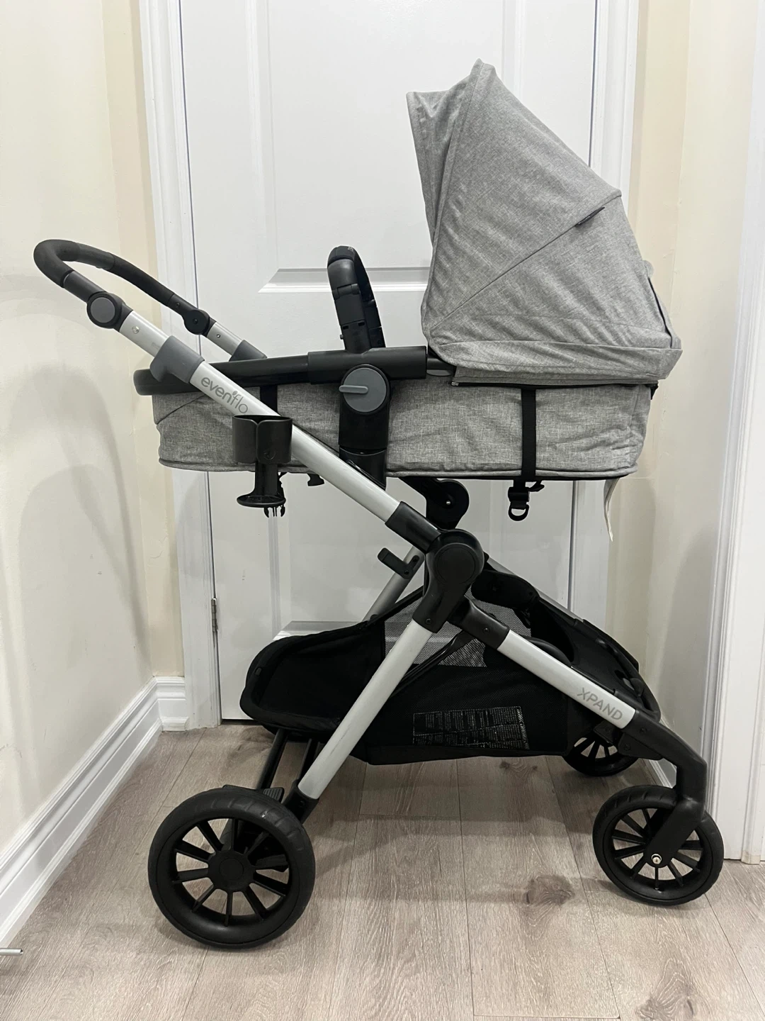 Selling an Evenflo Pivot Xpand travel system. It can be converted from a single to a double stroller without any tools! It includes the stroller frame, toddler seat, infant car seat, and car seat base Pickup : Brock and Taunton Pickering