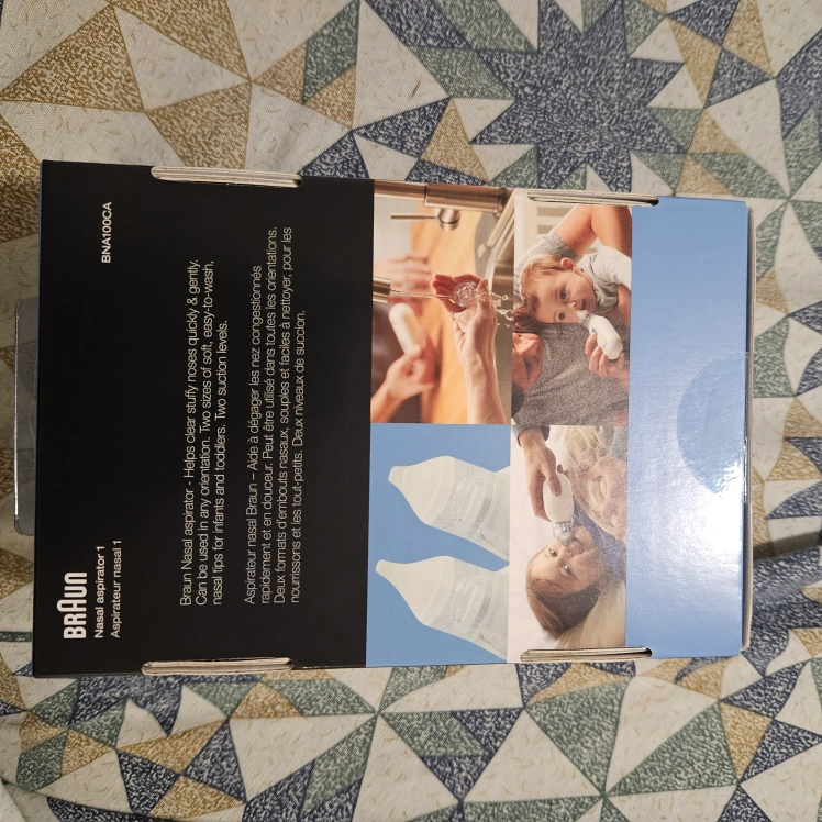 I'm selling a brand new Braun Nasal Aspirator 1, still in its original box! It helps clear stuffy noses quickly and gently. It can be used in one of two sizes for soft, easy-to-wash, nasal tips for infants and toddlers. It also features two suction levels and washable tips, making it easy to clean