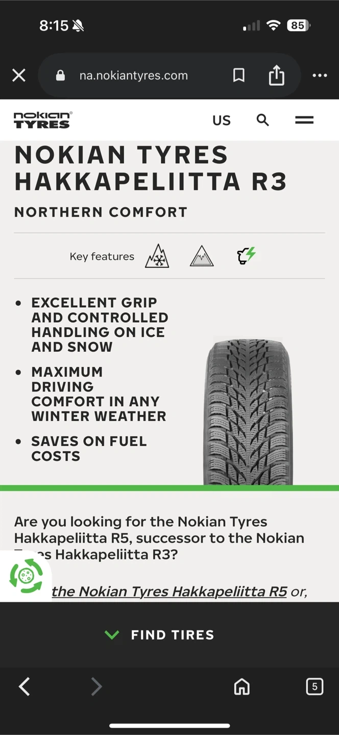 Nokian Hakkapeliitta R3 Winter Tires 215/55R17
