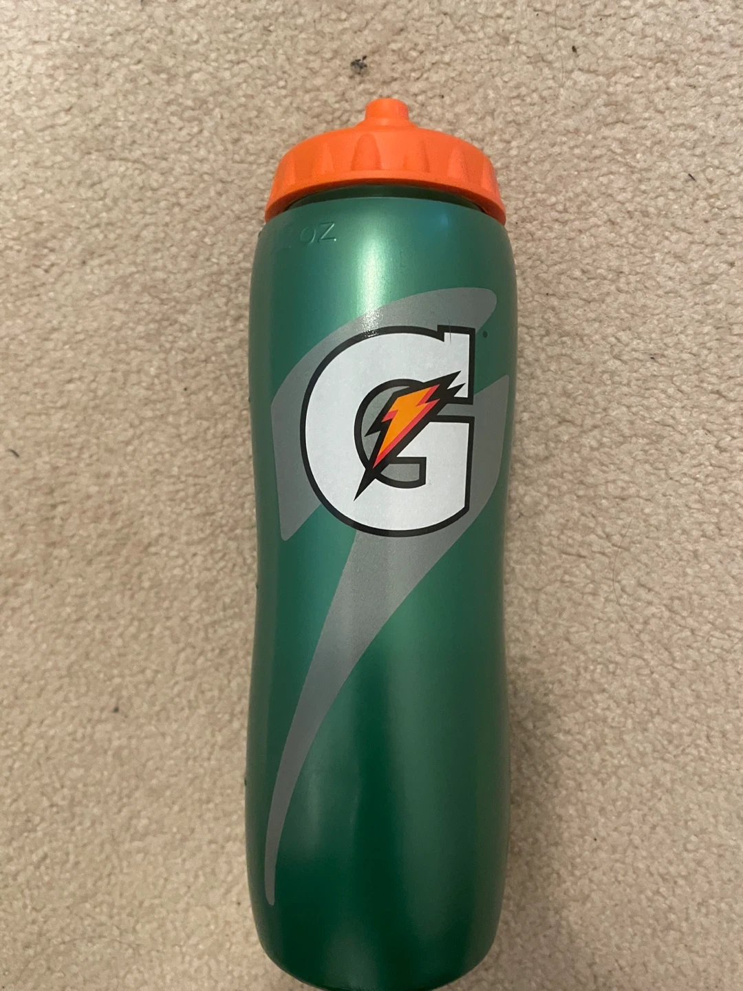 19Selling a Gatorade water bottle! It's green with the classic Gatorade logo and an orange lid. Perfect for staying hydrated during workouts or any activity